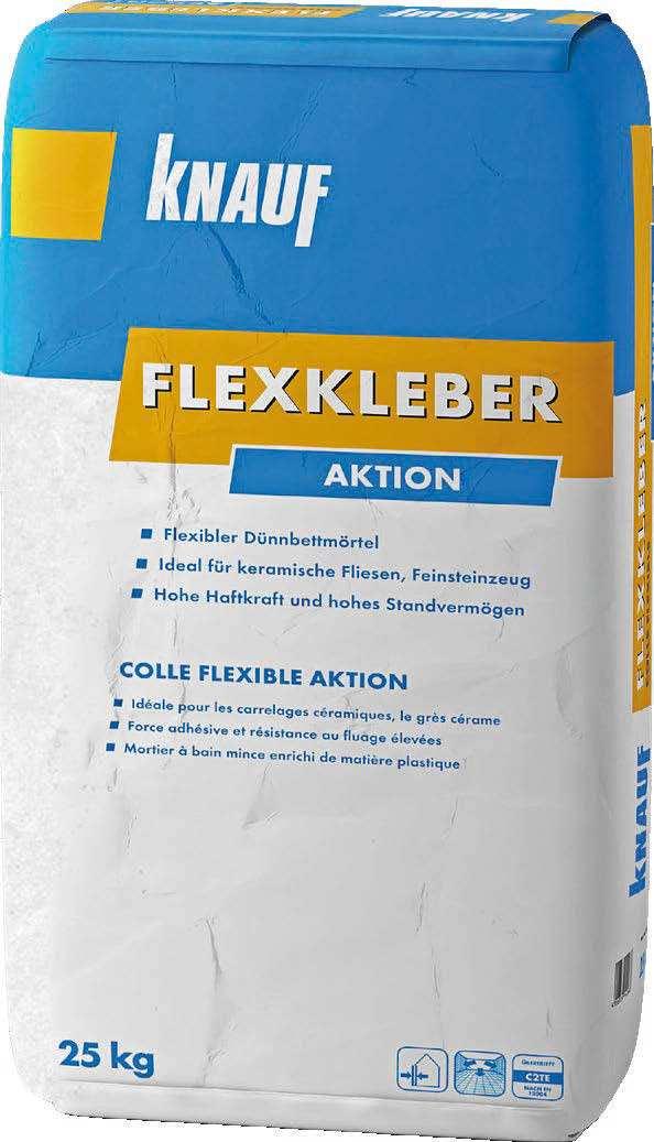 ■ flexibler, kraftvoller und kunststoffvergüteter Dünnbettkleber