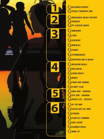1 KALIAKRIA RESORT 2 TOTALLY ROMANTIC BAR 1 ARROGANCE MUSIC FACTORY 2 BONKERS 3 PR. GOLDEN SANDS 1 AVANGARD 2 CUBO 2 HORIZONT 3 MAKALALI 4 PLANET 5 XTRAVAGANZZA