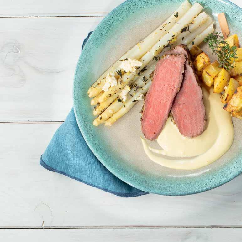 ARGENTINISCHES ROASTBEEF MIT KARTOFFELSPIESSEN UND SPARGELFETA-PÄCKCHEN FETAPÄCKCHE N