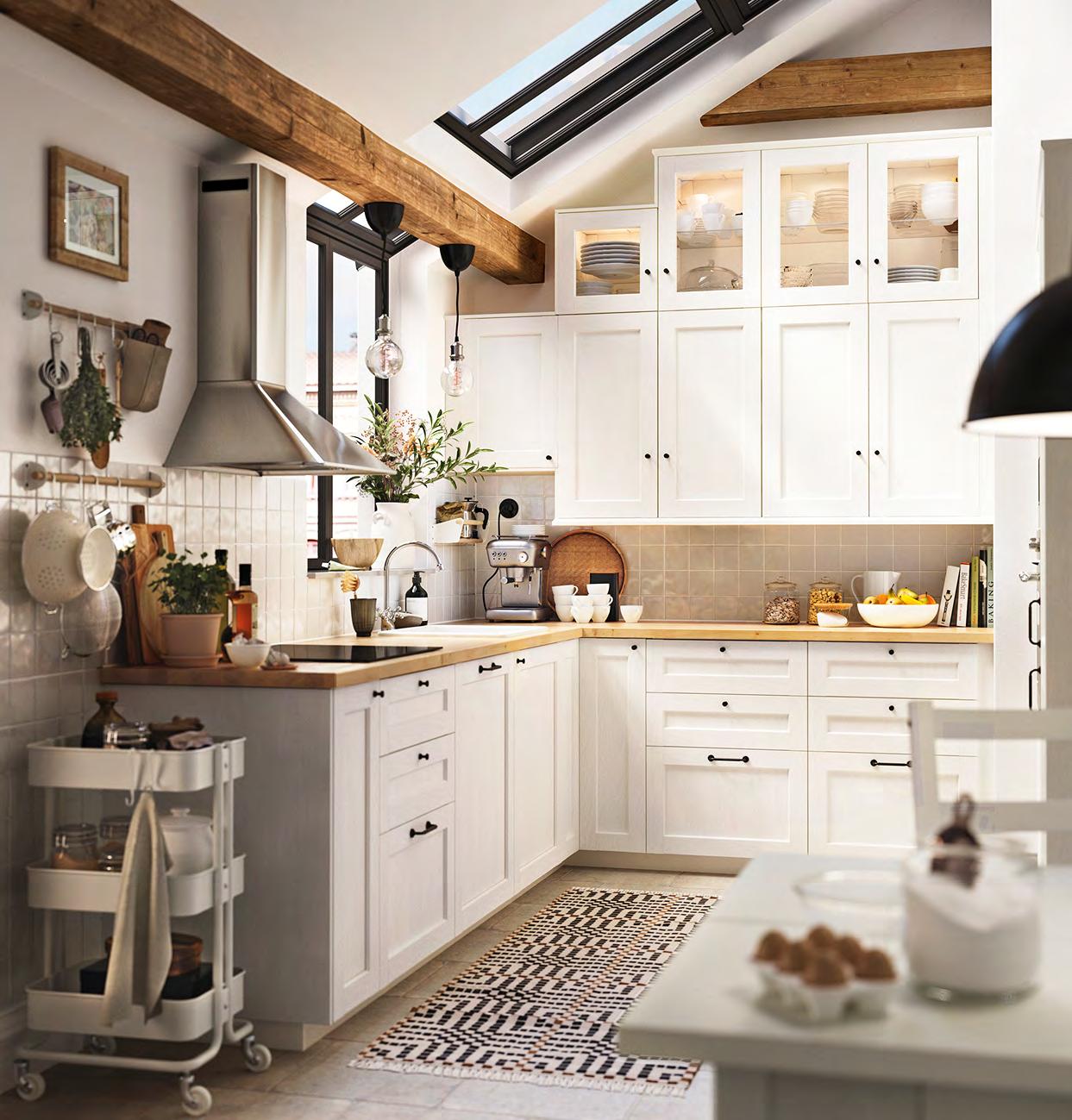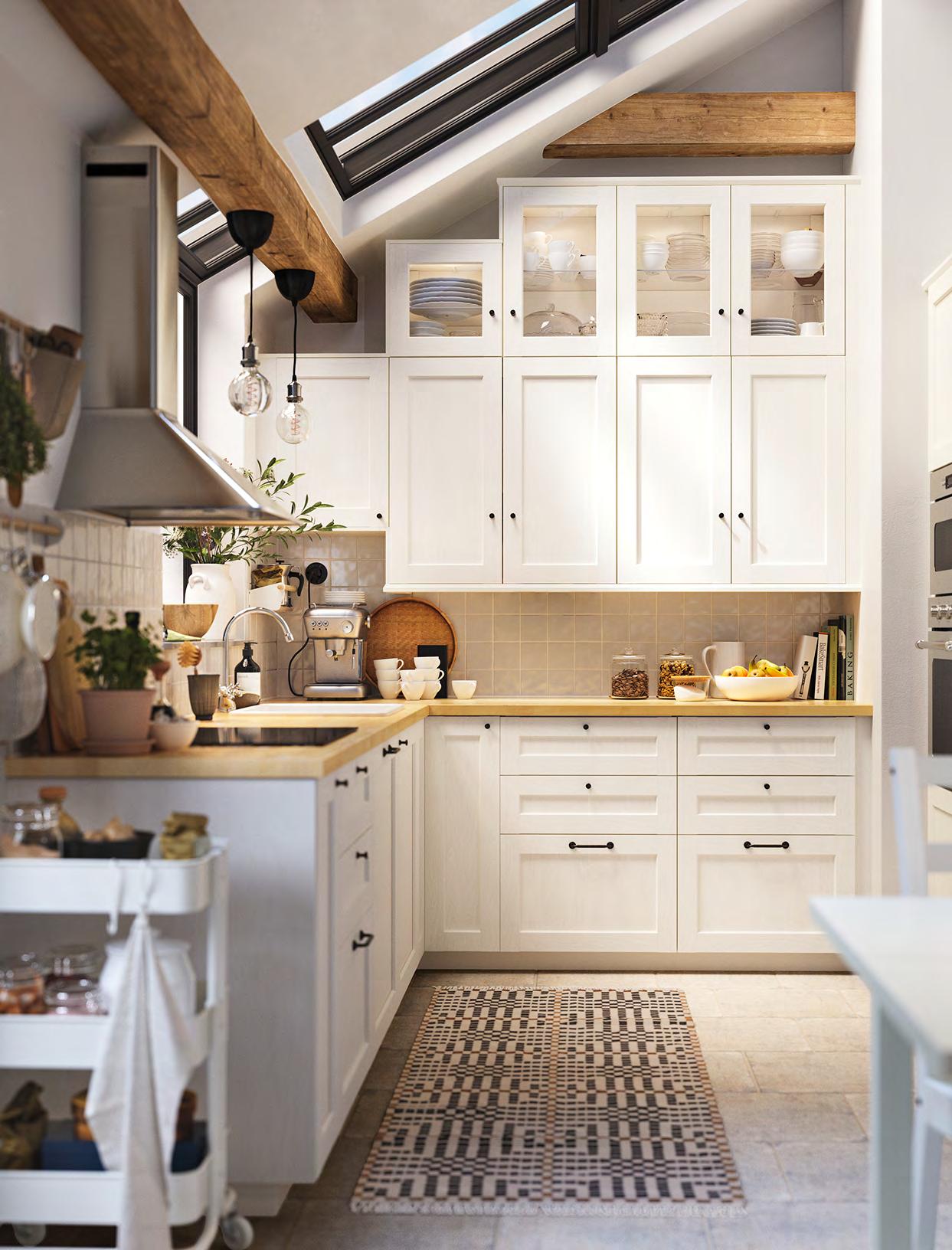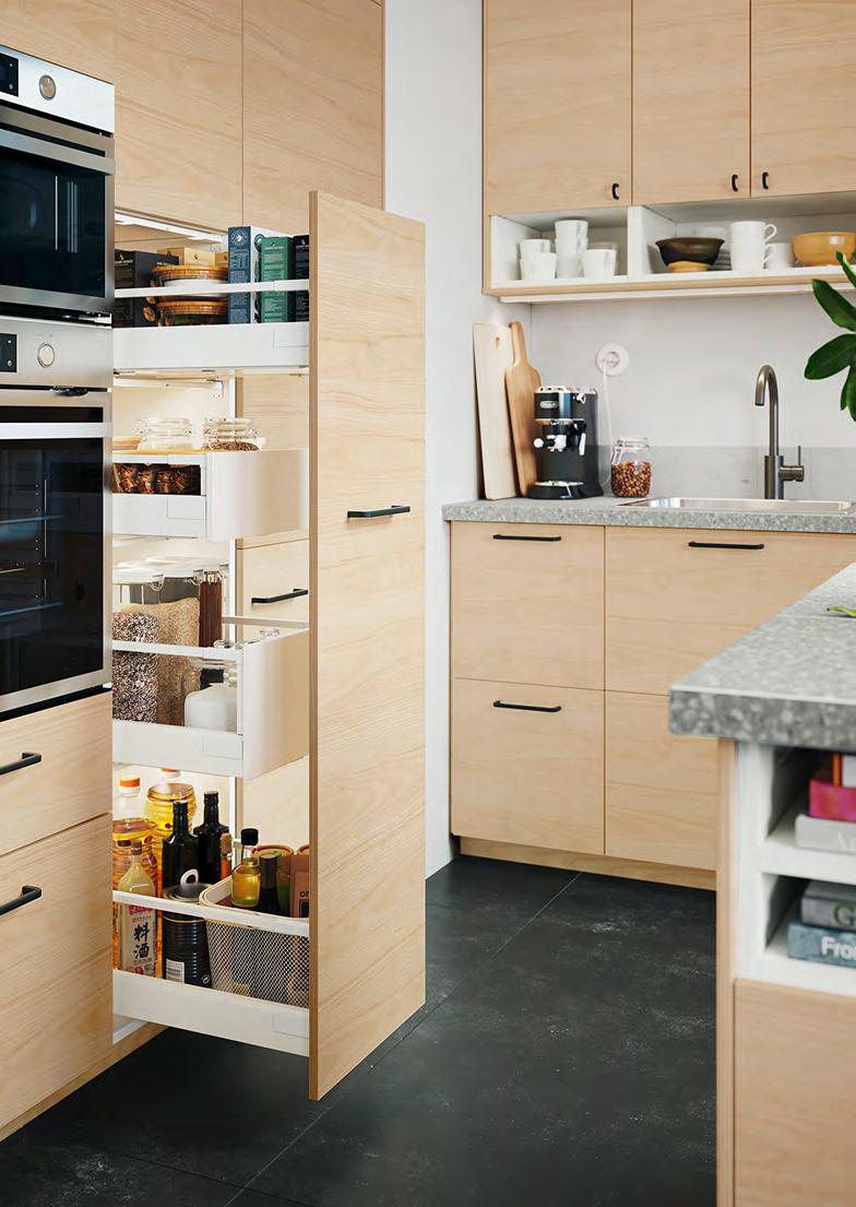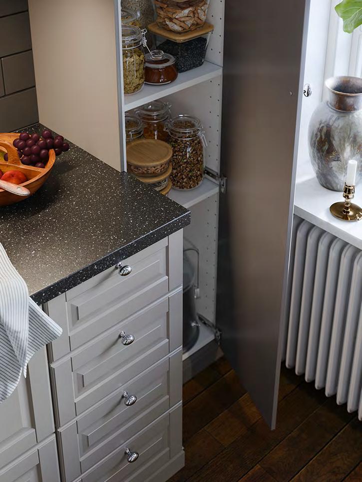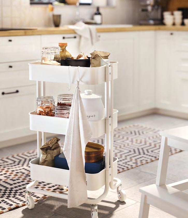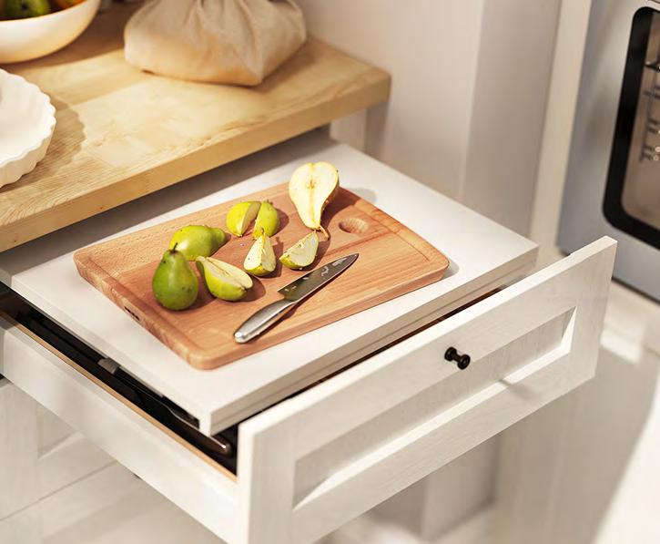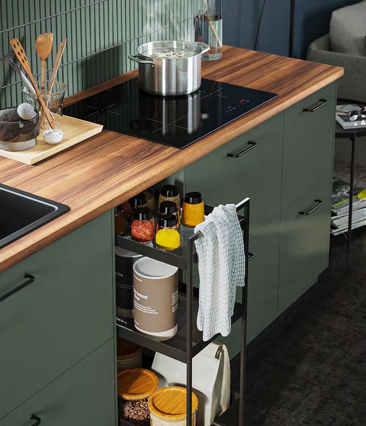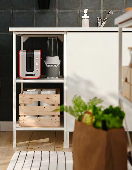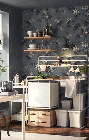 Точно в десятката Ако сте от хората, които приемат това, което им предлага животът, имаме точното решение за вас – планирайте и купете вашата кухня за нула време, като се възползвате от нашите шкафове KNOXHULT. Комбинирайте ги спрямо вашите нужди, добавете подходящи на интериора дръжки и добавете финалния щрих с електроуреди и вътрешни органайзери. 1 HÅVERUD маса със стълба за съхранение Добавете кукички, висящ органайзер и контейнер върху стъпалата от стълбата, за да съхранявате нещата, които искате да са ви подръка Меламиново фолио и прахово боядисана стомана Ш105×Д66 В192см. Черно 405.042.54 2 VARIERA вътрешен рафт Можете да свържете 2 или повече рафта VARIERA с приложените винтове. Стомана Ш32×Д28 В16см. Бяло. 601.366.23 3 SUNNERSTA комплект кухненски органайзери. Лесна сглобка без нужда от пробиване. ABS пластмаса и прахово боядисана стомана Ш45.7×В45–65см. 193.384.26 4 KNOXHULT ъглова кухня. Включени: Мивка, сифон със запушалка, смесител, шкафове, чекмеджета, врати, работен плот, крака, цокли, рафтове, панти и фитинги. ПДЧ високопресован ламинат и пластмаса Ш285/122×Д61 В220см. Бяло 094.779.79 5 NISSAFORS количка Стабилната конструкция и четирите колелца улесняват преместването на количката и ви позволяват да я използвате там, където искате Благодарение на малкия си размер се побира и в тесни пространства Прахово боядисана стомана Д50.5×Ш30 В83см. Бяло. 404.657.33 58 KNOXHULT KNOXHULT 59 SUNNERSTA комплект кухненски органайзери 3 1 HÅVERUD маса със стълба за съхранение 2 KNOXHULT ъглова кухня 4 NISSAFORS количка 5