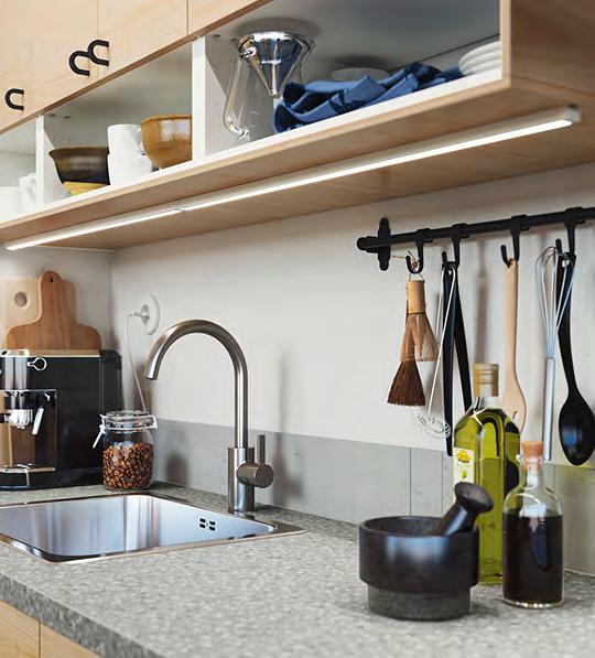 Творчеството се среща със семплия дизайн Каквито и разчупени форми да има домът ви, ENHET ще пасне идеално. Просто изберете една от многото достъпни кухненски комбинации онлайн (нашата Програма за проектиране за кухни ще ви помогне да я адаптирате към нуждите си) и ще разполагате с практична кухня, която ще е готова почти за нула време. Максимално удобно! 1 SKATTÅN контейнер. Превръща пространството под откритата етажерка ENHET в практично място за съхранение, в което всичко ще ви е подръка Полипропиленова пластмаса Ø12 В34см 304.657.57 2 KNAGGLIG щайга Нетретиран масив бор. Ш46×Д31 В25см Бор. 702.923.59 3 SKYDRAG/TRÅDFRI комплект за осветление с безжичен димер TRÅDFRI. Алуминий с прахово покритие. Бяло 193.856.44 4 SÖDÅKRA висяща лампа Всяка висяща лампа е уникална, защото е направена от естествен материал бреза Фурнир бреза с безцветен лак и прахово боядисана стомана Ø45см Бреза 404.539.71 5 ENHET кухня Уредите и осветителните тела се продават отделно С покритие фолио и прахово боядисана стомана Ш203×Д63.5 В222см Бяло. 293.374.07 6 MATÄLSKARE фурна с горещ въздух. Клас енергийна ефективност: A (от D до A+++). Волтаж: 220-240V. Ш59.5×Д56.9 В59.5см Металически цвят 403.687.65 52 ENHET ENHET 53 Комплектът за LED осветление SKYDRAG/TRÅDFRI е специално проектиран за вашата кухня ENHET цялостно и находчиво решение, което е лесно за монтиране Кухненска система ENHET и кухненските смесители имат 10 години безплатна гаранция. 1 SKATTÅN контейнер 4 SÖDÅKRA висяща лампа 6 MATÄLSKARE фурна с горещ въздух 3 2 KNAGGLIG щайга ENHET кухня 5