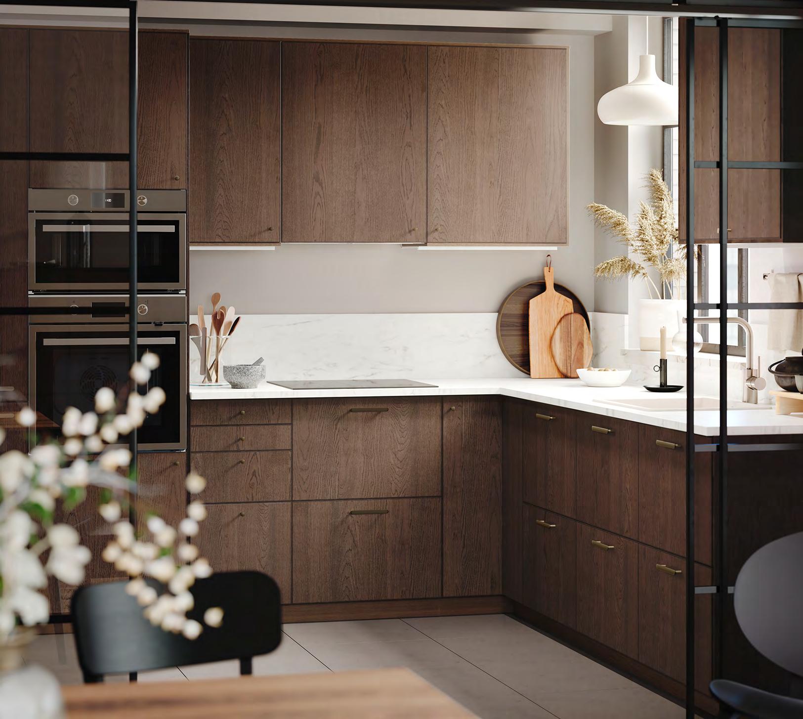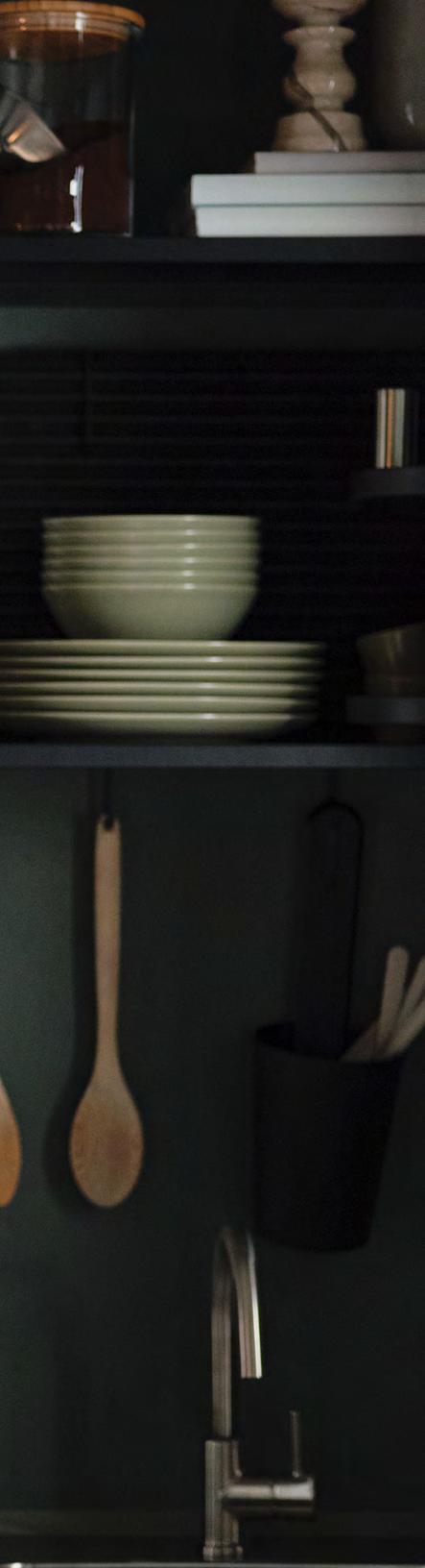 34 35 1 DELSJÖN кухненски смесител. С аератор (8 л/мин), който спестява вода и електричество на системи с високо налягане. Метализиран месинг и цинк и полиамидна пластмаса. В36см. Тъмен калай. 604.887.81 2 VOXTORP врата С покритие фолио. Ш40×В40см. Тъмносиво. 204.540.90 3 FRÖJERED чело за чекмедже. Бамбук с покритие от безцветен лак. Ш40×В20см. Светъл бамбук. 504.416.47 4 INSJÖN кухненски смесител. С аератор (8 л/мин), който спестява вода и електричество на системи с високо налягане. Хромиран месинг. В40см. Хромиран. 703.701.25 5 STENSUND чело за чекмедже. Да се комбинира с обли или продълговати дръжки. С покритие боя. Ш60×В20см. Бежово. 004.531.95 6 GAMLESJÖN кухненски смесител, 2 крана. С аератор (8 л/мин), който спестява вода и електричество на системи с високо налягане. Метализиран месинг. В36см. Полиран метал, черно. 203.416.73 7 LERHYTTAN чело за чекмедже. Да се комбинира с обли или продълговати дръжки. Масив ясен, фурнир ясен, байц, безцветен лак. Ш60×В40см Черен байц. 903.560.72 8 JÄRSTA врата. С покритие гланцово фолио. Ш60×В60см. Гланц/светъл тюркоаз. 904.699.84 9 TÄMNAREN кухненски смесител със сензор. С аератор (8 л/мин), който спестява вода и електричество на системи с високо налягане. Метализиран месинг. 903.594.95 10 RINGHULT чело за чекмедже. Да се комбинира с обли или продълговати дръжки. С покритие гланцово фолио. Ш60×В40см. Гланц/бяло. 302.051.04 Нека да носи индивидуалноствашата Радвайте се на кухня, която ще бъде ваша до последния детайл – комбинацията от цветове, мотиви и материали оказва голямо влияние върху това как ще изглежда крайният резултат. Разгледайте разнообразния ни асортимент от стилове кухни. Съчетавайте вашите идеи, докато намерите микса, който ще ви подхожда най-много. JÄRSTA Ш60×В60смврата, 8 STENSUND чело за Ш60×В20смчекмедже, 5 7 LERHYTTAN чело за Ш60×В40смчекмедже, 3 FRÖJERED чело за Ш40×В20смчекмедже, 4 9 10 2 1 Проектиране Дори и за големите проекти, малките неща са от значение. Обсъдете идеите си с наш интериорен консултант и ще ви помогнем да реализирате всичко до най-малкия детайл. 6