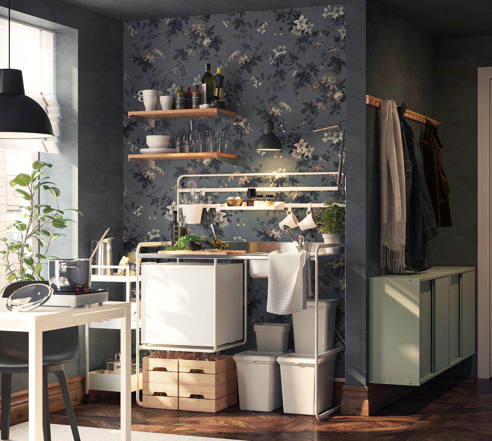 62 SUNNERSTA SUNNERSTA 63 По-малкото е повече За всички запалени домашни главни готвачи с ограничено място и бюджет: SUNNERSTA е миникухня, в която ще започнете да се вихрите за отрицателно време. А ако се местите, лесно ще я демонтирате и ще я вземете със себе си 1 TILLREDA преносим индукционен котлон Сензорен контролен панел. 1x2000W, 1x175мм индукционна зона Волтаж 220-240V. Включва захранващ кабел. Ш27×Д30.5см. Бяло.104.867.94 2 SUNNERSTA миникухня В комплектa са включени 5 кукички Неръждаема стомана и прахово боядисана стомана Ш112×Д56, В139см. 691.396.84 3 HÅLLBAR кофа с капак Кошовете HÅLLBAR са проектирани да задоволят различни нужди за сортиране на отпадъци Този кош е идеален за сортиране на консерви, малки опаковки като продукти за лична хигиена, за съхраняване на кухненски ролки или торбички за пазаруване Полипропиленова пластмаса Ш26.3×Д21.2, В32.6см. 10л. Светлосиво 803.980.58 4 HÅLLBAR кофа с капак Кошовете HÅLLBAR са проектирани да задоволят различни нужди за сортиране на отпадъци Този кош е перфектен за сортиране на предмети като картон, пластмаса хартия бутилки, стъкло, консерви пликове и брошури Полипропиленова пластмаса Ш26.3×Д38.6, В32.6см. 22л. Светлосиво. 204.202.03 Пестящ енергия при готвене индукционният котлон TILLREDA е идеалната придобивка за вашата кухня Когато приключите с него, просто го приберете, за да освободите място. HÅLLBAR кофа с капак, 22л 4 2 SUNNERSTA миникухня 1 3