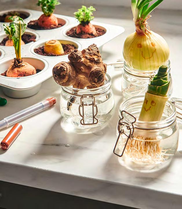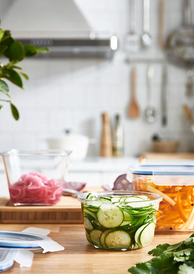 46 47 Свеж поглед върху храната Започнете да прилагате нови позитивни идеи за по-зелен начин на живот. Планирайте седмичното меню, като имате пълен поглед върху провизиите в хладилника и килера. По този начин нищо няма да бъде прахосано (а вие ще се придържате към здравословните си навици дори когато графикът ви стане напрегнат). 1 IKEA 365+ кутия за храна с капак. Заключващият се механизъм на капака предотвратява протичането и предпазва съдържанието от разваляне при минусови температури – идеален начин за пренасяне и съхранение на храна. Термоустойчиво стъкло, пластмаса и силиконова гума. Д15×Ш15, В12см. 1.2л. Квадрат/стъкло/пластмаса. 592.691.19 2 IKEA 365+ кутия за храна с капак. Съдът и капакът са прозрачни, така че лесно можете да откриете това, което ви трябва, без значение къде е поставен бурканът. Топлоустойчиво стъкло, пластмаса и силиконова гума. Ø14, В9см. 600мл. Кръгъл/стъкло/пластмаса. 392.690.97 3 KORKEN буркан с капак. Благодарение на вакуумния капак храната запазва вкуса и аромата си по-дълго. Стъкло, естествена гума и неръждаема стомана. Ø11, В10.5см. 0.5л. Прозрачно стъкло. 400.658.67 4 EFTERFRÅGAD термос за храна. Благодарение на широкия си отвор, лесно можете да го пълните, както и да се храните направо от него. Запазва топлината на храни или супи до 6 часа. Неръждаема стомана и пластмаса. В14см. 0.5л. 402.883.54 Приберете останалата вкусна храна за утрешния обяд (или я споделете със съсед, който се нуждае от нея). Пресни и зелени, направо от буркана! Лесно можете да започнете своя мъничка ферма в кухнята и да отглеждате собствени зеленчуци. Да помислим и какво да сложим в кутията! Кутиите може да са малки, но с тяхна помощ в ежедневните ви задължения ще настъпи голяма промяна. Идеални са за организиране на вашите покупки и за съхраняване на предварително приготвени ястия. IKEA 365+ кутия за храна с капак 2 KORKEN буркан с капак 3 1 4