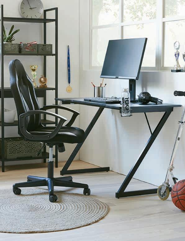 БЮРО Декоративен фурнир. Подвижната част на бюрото ви позволява да го поставите в ъглови зони или да го разгънете. Ш41-107 x Д107-165 x В76 см 369 лв Спестете 25% 275лв HALSTED ГЕЙМИНГ БЮРО Декоративен фурнир и стомана. С поставка за чаша и слушалки. Ш60 x Д120 x В74 см 199 лв Спестете 50% 95лв БЮРО HARLEV ГЕЙМЪРСКИ СТОЛ Изкуствена кожа и мрежа. С регулируема височина и механизъм