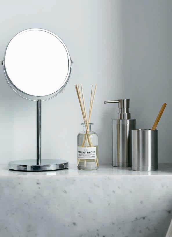 1) MEDLE ОГЛЕДАЛО Стомана. Ш15 x Ø18 x В35 см 2) MOHEDA АРОМАТЕН ДИФУЗЕР С дървени пръчици. 120 мл 3) MEDLE ДИСПЕНСЪР ЗА САПУН Неръждаема стомана. Ø6 x В17 см 4) MEDLE ПОСТАВКА ЗА ЧЕТКИ ЗА ЗЪБИ Неръждаема стомана. Ø6 x В9 см 650 лв
