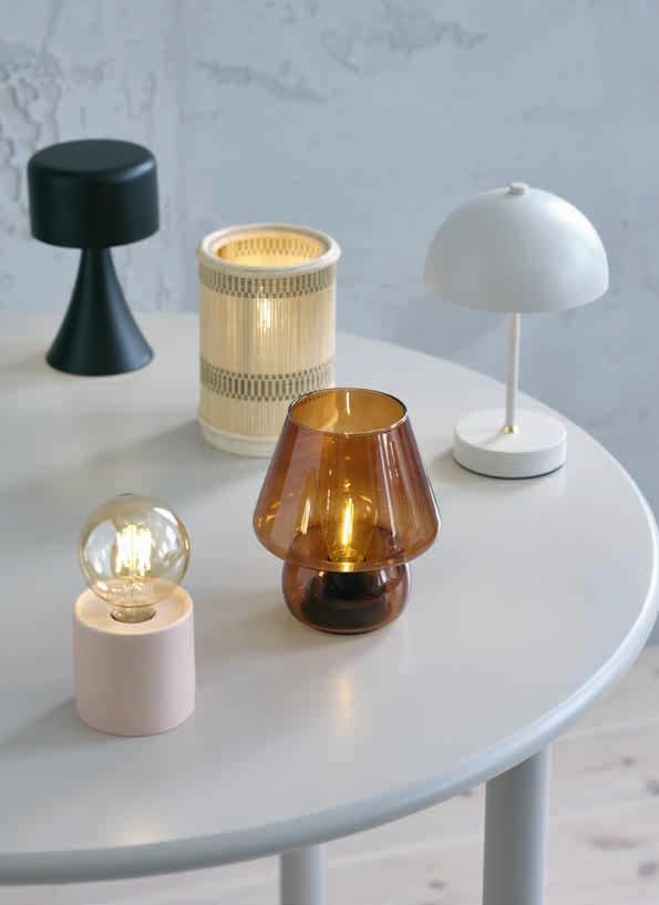 1) JACOB ЛАМПА НА БАТЕРИИ С таймер. Ø13 x В21 см 2) MINGUS ЛАМПА НА БАТЕРИИ Бамбук. С таймер. Ø13 x В18 см 3) KENT ЛАМПА НА БАТЕРИИ Пластмаса/стомана. Със сензор за докосване, 3 степени на яркост и таймер. Не вкл. батерии. Ø16 x В25 см 4) HOLGER ЛАМПА НА БАТЕРИИ Стъкло/ полипропилен. Ø15 x В17 см 5) ARNOLD ЛАМПА НА БАТЕРИИ Алуминий/ керамика/стъкло. С таймер. Ø9 x В16 см