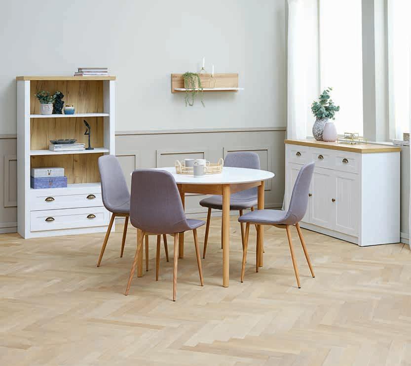 Маса: Масивна дървесина и MDF. Ø110 x В75 см. С 2 крила. Размер в разгънато положение: Ш110 x Д200 x В75 см. Стол: Маса 1099 лв 600 лв Стол 109 лв 55 лв
