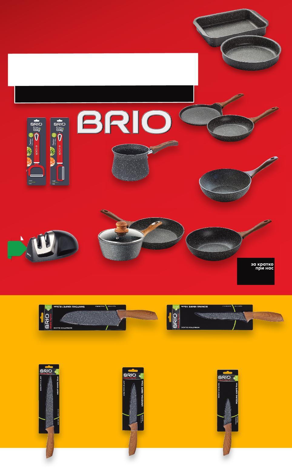 н о с ч в ч н 21,99 2,49 8,49 3,99 0,99 2,59 3,79 4,99 4,69 19,99 16,99 20,99 24,99 49,99 -50% Ново 43,99 -50% 4,99 -50% 16,99 -50% 7,99 -50% 1,99 -50% 5,19 -50% 7,59 -50% 9,99 -50% 9,39 -50% 39,99 -50% 33,99 -50% 41,99 -50% BRIO Уок тиган Hard Rock Ø28 см BRIO Нож Hard Rock различни видове BRIO Точило за ножове Compact 10 х 5 см BRIO Тиган Hard Rock Ø26 см или Уок Ø24 см BRIO Тиган Hard Rock Ø24 см или за палачинки Ø25 см BRIO Тава Hard Rock правоъгълна или кръгла, 1 бр. BRIO Касерола Hard Rock Ø18 см или Тиган Hard Rock Ø28 см BRIO Нож Hard Rock за белене, 8,9 см BRIO Джезве Hard Rock 700 мл BRIO Нож Hard Rock за месо, 16 см BRIO Белачка Easy & Cosy BRIO Нож Hard Rock универсален, 13 см BRIO Нож Hard Rock за обезкостяване, 16 см