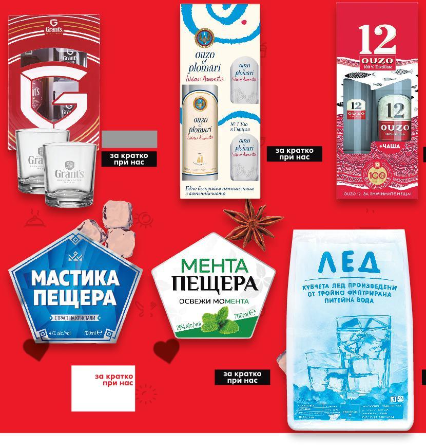 за печатни грешки. Аромат и вкус на праскова с вкус на цитрусови плодове, ябълка и праскова Интензивен аромат на ягода ички на ПРОМОПАКЕТ ПРОМОПАКЕТ ПРОМОПАКЕТ ВРЕМЕ ЗА КОКТЕЙЛИ ОТ АПЕРОЛ ШПРИЦ ДО ЯМАЙКА с на плодове ябълка и ВРЕМЕ ЗА -26% 20,49 27,99 -15% 8,99 10,59 -25% 16,49 21,99 -33% 16,99 25,49 -12% 19,99 22,90 -24% 24,99 32,99 -32% 1,69 2,49 -28% 6,99 9,79 12,79 9,99 -21% от тройно филтрирана питейна вода GRANT‘S Шотландско уиски 40% vol (1 л = 29,28) ПЕЩЕРА Мента 25% vol 0,7 л (1 л = 12,85) PLOMARI Узо 40% vol 0,7 л + 2 чаши (1 л = 23,56) OUZO 12 Узо 40% vol 0,7 л + чаша (1 л = 24,28) CIPRIANI BELLINI Ароматизирана напитка на винена основа пенлива Произход: Италия 0,75 л (1 л