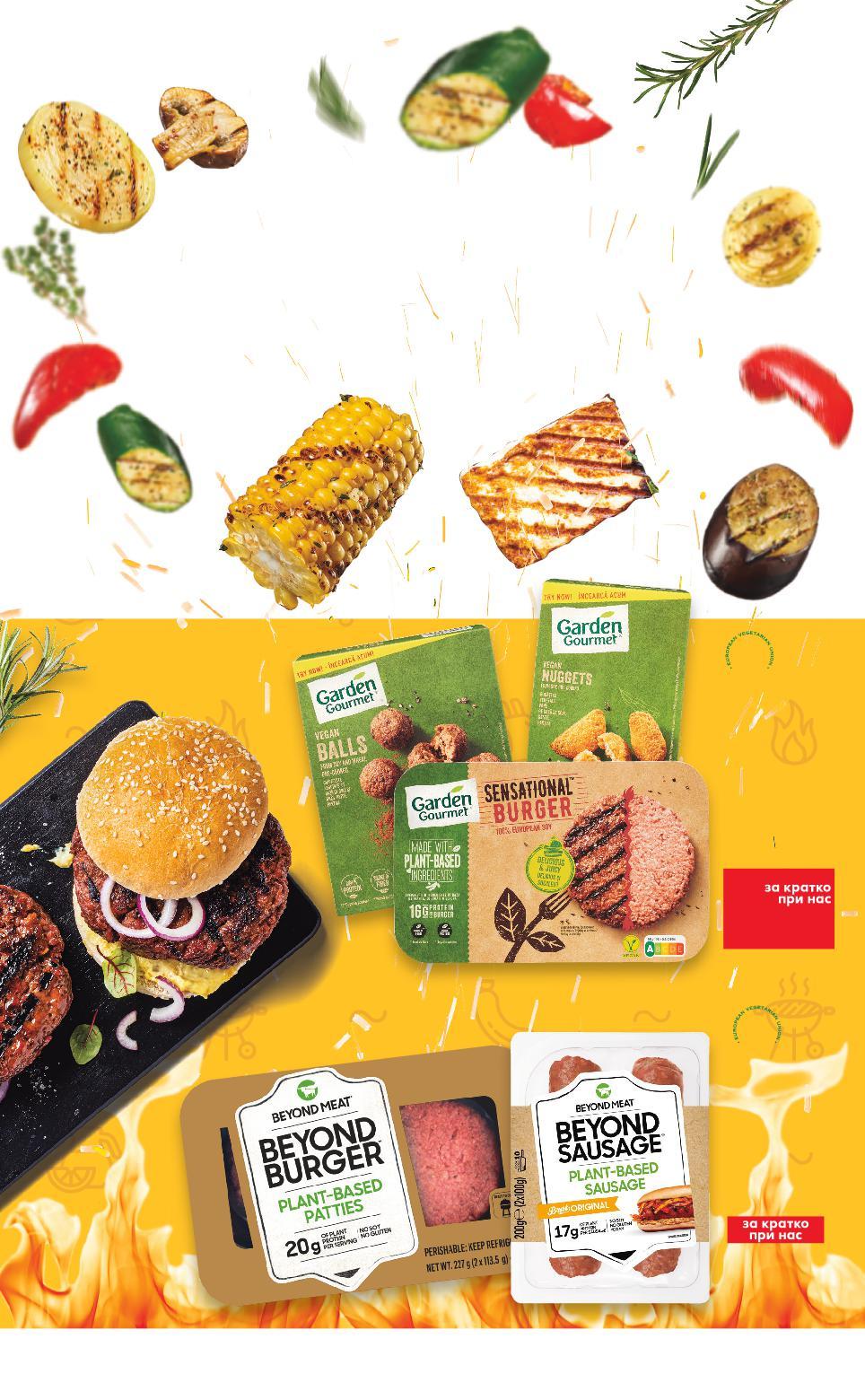 Стоките се продават в количества, обичайни за едно домакинство. Всички цени са в лева с включен ДДС. Всички артикули се предлагат без декорация. Снимките са примерни. -38% 7,99 12,99 7,99 12,99 -38% БАРБЕКЮ BEYOND MEAT Наденички или Бургер замразени 2 х 100 г или 2 х 113,5 г (1 кг = до 39,95) GARDEN GOURMET Бургер, Кюфтенца или Нъгетс замразени 226 - 300 г (1 кг = до 35,36)