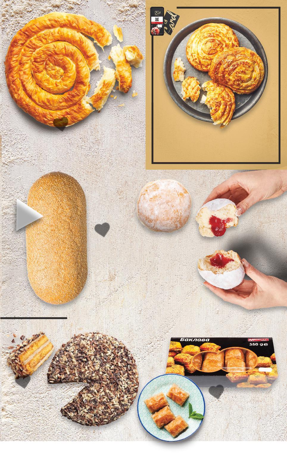 Цените са валидни за посочените на последна страница хипермаркети. Стоките се продават в количества, обичайни за едно домакинство. Всички цени са в лева с включен ДДС. Всички артикули се предлагат без декорация. Снимките са примерни. 0,49 само -34% 0,79 1,20 ЗАДЪЛЖИТЕЛЕН ТЕСТ И ПРОБНО ПЕЧЕНЕ НА ВСЕКИ НОВ ПРОДУКТ ПРЯСНО ИЗПЕЧЕНИ ХЛЕБЧЕТА И ЗАКУСКИ ВЪВ ВСЕКИ МОМЕНТ ОТ ДЕНЯ КАЧЕСТВЕНИ ПЕЧИВА 1,49 само Селски хляб пшеничен или типов 450 г (1 кг = 3,32) Пърленка по рецептасръбска 160 г (1 кг = 3,07) наБагетапещ с печен лук 200 г (1 кг = 3,95) ПЕКАРНА S14-BG-KW34-LFT-BACK_L-1000-10 14