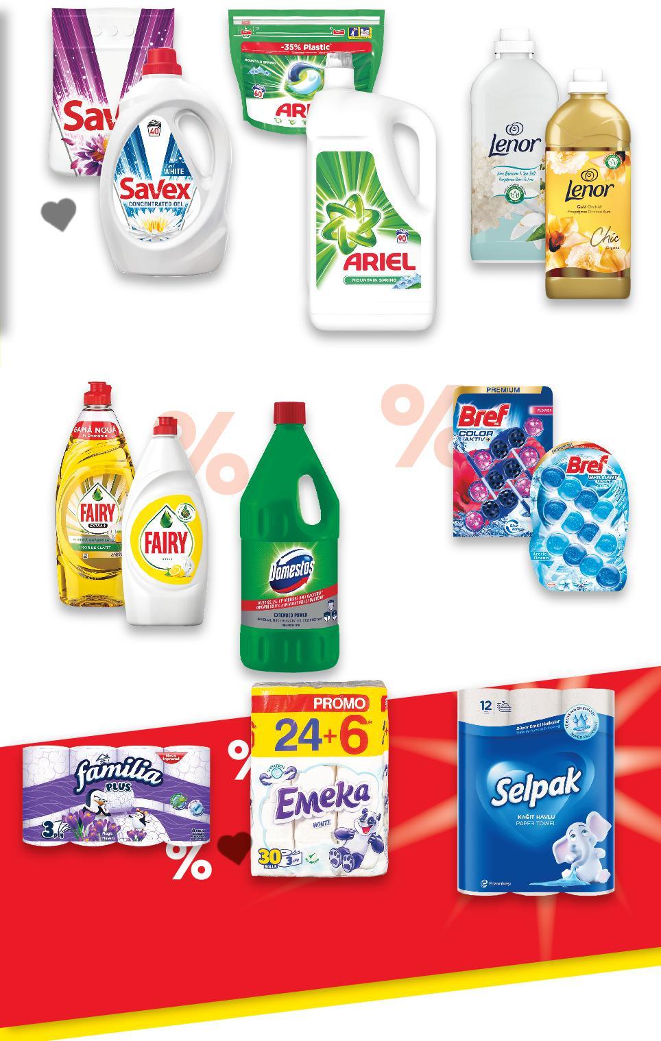 *Със звездичка са обозначени артикулите, които са специално предложение до изчерпване на наличностите. Kaufland не носи отговорност за печатни грешки. ПРОМОПАКЕТ 4,99 само 33,49* само 9,99 само 15,99* само -30% 3,99 5,75 5,99 само 7,39* само 3,39 само -0% 10,99* само ОмекотителLENOR различни видове 1,44 л = 48 пранета или 1,5 л = 50 пранета (1 л = от 3,33) КапсулиГелARIELили за пране гел: Mountain Spring 4,95 л = 90 пранета капсули: различни 54видове-67бр. = 54 - 67 пранета(1бр.=до 0,63) Прах,SAVEXГел или Капсули за пране 2 in 1 различни видове 4 кг/ 2,2 л = 40 28илипранета28бр.=пранета (1 кг = 2,50) хартияТоалетнаЕМЕКА Paradise или White целулознатрипластова 24 + 6 бр. (1 бр. = 0,54) хартияТоалетнаFAMILIA видоверазличницелулознатрипластова, 8 бр. опаковкав (1 бр. = 0,50) WCBREFблокче различни видове 3 бр. х 42 - 50 г препаратпочистващУниверсаленDOMESTOS Atlantic или Pine 2 л (1 л = 3,70)ПрепаратFAIRY за съдове различни видове 450 - 800 мл (1 л = от 4,24) ролкаКухненскаSELPAK целулознатрипластова 12 бр. опаковкав (1 бр. = 0,92) ДРОГЕРИЯ 48/50 пранета 1 изпиране = 0,11/0,10 лв. 54/67 пранета 1 изпиране = 0,63/0,50 лв. 40 пранета 1 изпиране = 0,25 лв. 90 пранета 1 изпиране = 0,38 лв. 2 литра 12 броя S31-BG-KW34-LFT-DRP_R-1000-10 31