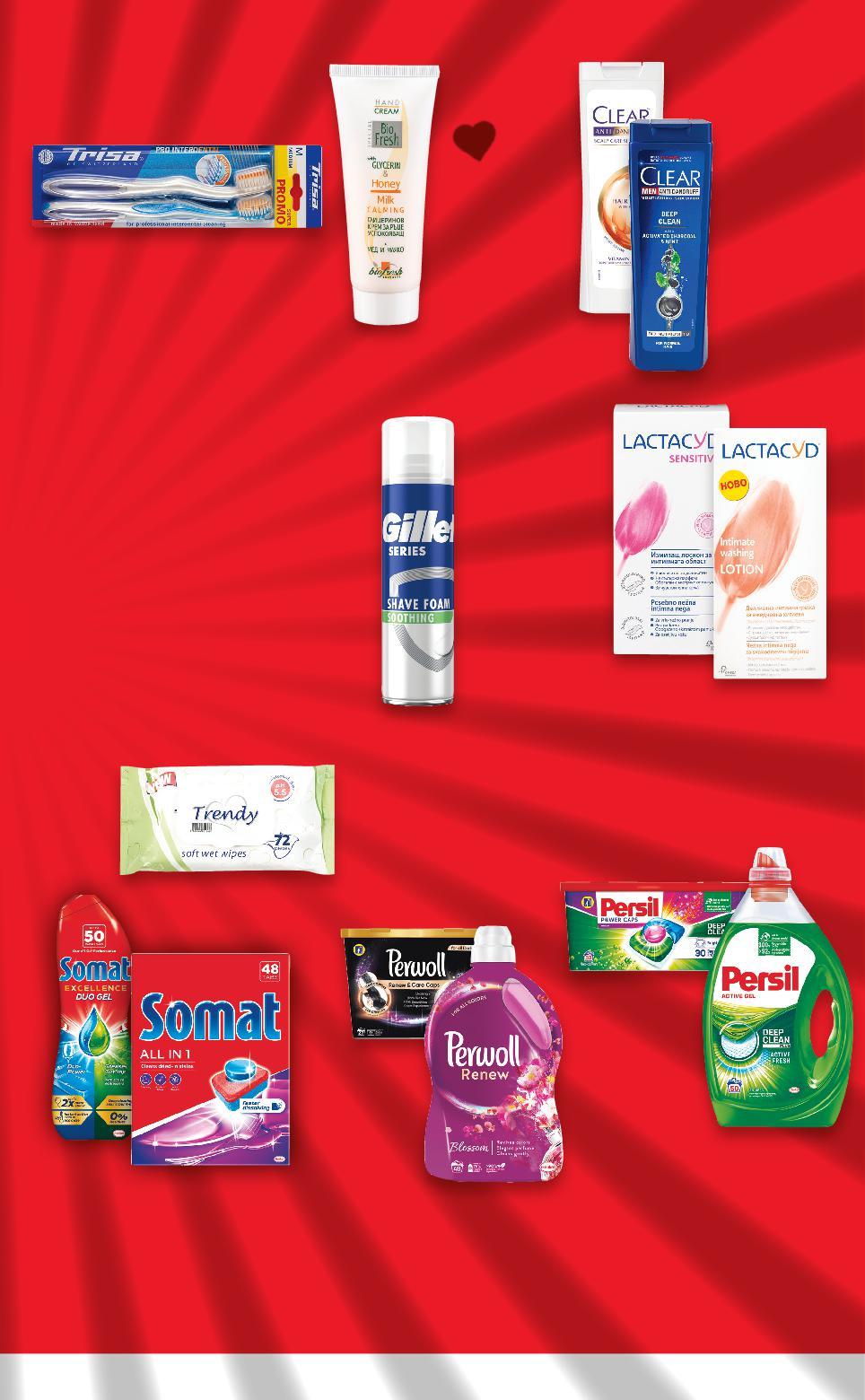 *Със звездичка са обозначени артикулите, които са специално предложение до изчерпване на наличностите. Kaufland не носи отговорност за печатни грешки. -50% 5,74 11,49 -50% 0,82 1,65 -50% 12,99 25,99 -50% 14,99 29,99 -50% 1,49 2,99 -50% 3,09 6,19 -50% 4,99 9,99 -50% 4,64 9,29 -50% 13,99 27,99 50 пранета 1 изпиране = 0,28 лв. 33 пранета 1 изпиране = 0,43 лв. 27 / 28 пранета 1 изпиране = 0,49 / 0,47 лв. 48 пранета 1 изпиране = 0,28 лв. ШампоанCLEAR различни видове 400 мл (1 л = 14,35) КремBIOFRESHзаръце различни видове 50 мл (1 л = 16,40) заГелPERWOLLилиКапсулипране различни видове 2,88 л = 48 пранета капсули: Black 27 бр. = 27 илипранетаColor28 бр. = 28 пранета (1 л = 4,52) ТаблеткиSOMAT или Гел съдомиялназа таблетки: All in 1 или Excellence 32 - 48 бр. гел: Anti-Grease 900 мл (1 бр. = от 0,32) МокриTRENDYкърпи с капак 72 бр. в опаковка бръсненеГелПянаGILLETTEилиза видоверазлични 200 - 250 мл (1 л = от 12,36) хигиенаГелLACTACYDзаинтимна Daily илиSensitiveLotion,Fresh 200 мл (1 л = 24,95) зъбиЧеткаTRISAза ProInterdental 2 бр. в опаковка (1 бр. = 2,32) КапсулиГелPERSILили за пране различни видове 2,50 л = 50 пранета или 33 бр. = 33 пранета (1 л = 5,60) ИЗГОДНИТЕ ЦЕНИ СА В KAUFLAND! 50% ИЗБРАНИ ПРОДУКТИ С НАМАЛЕНИЕ S5-BG-KW34-LFT-SPAR2_R-1000-10 5
