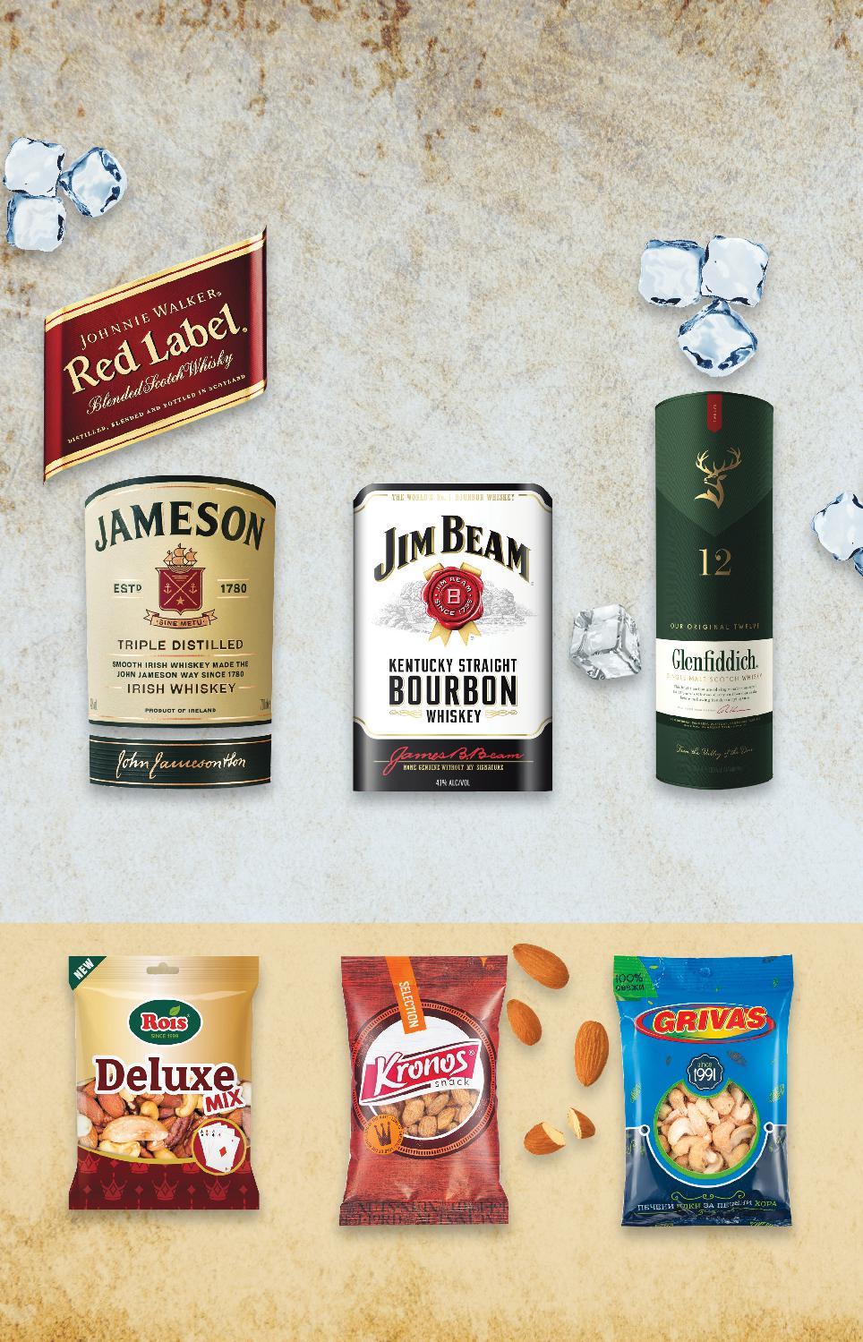 Цените са валидни за посочените на последна страница хипермаркети. Стоките се продават в количества, обичайни за едно домакинство. Всички цени са в лева с включен ДДС. Всички артикули се предлагат без декорация. Снимките са примерни. ЕДНО МАЛКО С ЯДКИ, МОЛЯ! ✓ 12-годишно -28% 22,99 31,99 -36% 2,99 4,69 -38% 4,49 7,29 -31% 4,29 6,29 -25% 46,99 62,99 23,99 23,99 само само уискиИрландскоJAMESON 40% vol 0,7 л (1 л = 32,85) ИндийскоGRIVAS кашу печено 100 г (1 кг = 29,90) ПечениKRONOSбадеми 130 г (1 кг = 34,54) ПечениROIS ядки Делукс 150 г (1 кг = 28,60) уискиШотландскоGLENFIDDICH Single Malt 40% vol 0,7 л (1 л = 67,13) уискиШотландскоWALKERJOHNNIE 40% vol 1 л (1 л = 23,99) JIM уискиБърбънBEAM 40% vol 1 л (1 л = 23,99) ПИТИЕТА И ЯДКИ 1 литър 1 литър НАД 300 ВИСОКОАЛКОХОЛНИНАПИТКИЩЕНАМЕРИШПРИНАС S26-BG-KW34-LFT-BEER_N_L-1000-10 26