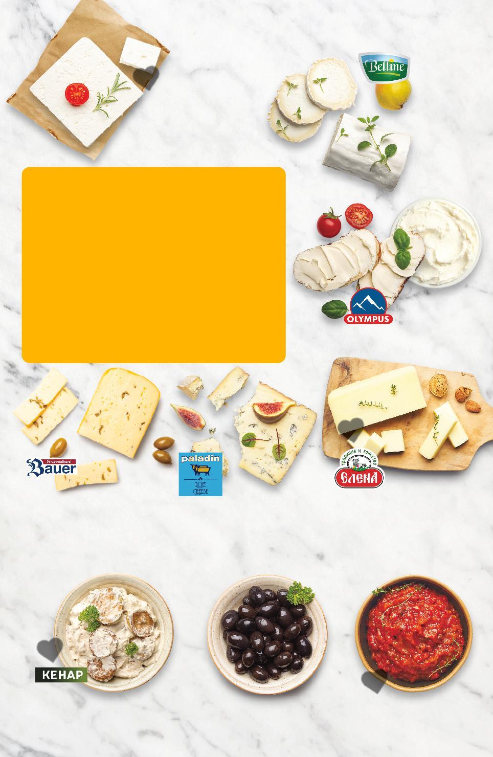 *Със звездичка са обозначени артикулите, които са специално предложение до изчерпване на наличностите. Kaufland не носи отговорност за печатни грешки. МОЖЕШ ДА ДЕГУСТИРАШ НА МЯСТО ПРОДУКТА ПРЕДИ ДА ГОКАЧЕСТВОТОКУПИШ НА СЪХРАНЕНИЕ СЕ ПРОВЕРЯВА ОТ МЕЖДУНАРОДЕН ИНСТИТУТ КАЧЕСТВЕНА СЕЛЕКЦИЯ ОТ БЛИЗО И ДАЛЕЧ МЯСТО ГО КУПИШ -33% 11,99 17,99 29,99* само -10% 14,99 16,79 4,99 само 7,99 само -31% 18,99 27,89 -32% 18,89 27,89 -37% 8,49 13,49 -35% 22,45 14,49 Крема сирене кг (1 кг = 11,99) Сирене от козе мляко с бяла плесен 50% НидерландияПроизход:масленост кг (1 кг = 29,99)Сирене от овче мляко кг (1 кг = 14,99) лютеницаДомашна едросмляна кг (1 кг = 4,99) ТиквичкиСалата сосспециаленсъс кг (1 кг = 7,99) Синьо сирене 50% Произход:масленостГермания кг (1 кг = 18,99) Сирене 55% масленост с маслини, чесън или Произход:руколаГермания кг (1 кг = 18,89) КолосалСупермаслиниНатурални размер: 111/ 120 Произход: Гърция кг (1 кг = 8,49) Кашкавал от млякокраве кг (1 кг = 14,49) ДЕЛИКАТЕСИ ОТ ВИТРИНА С ОБСЛУЖВАНЕ СИРЕНЕ И КАШКАВАЛ ОТ ВИТРИНА С ОБСЛУЖВАНЕ S13-BG-KW34-LFT-BED2_R-1000-10 13