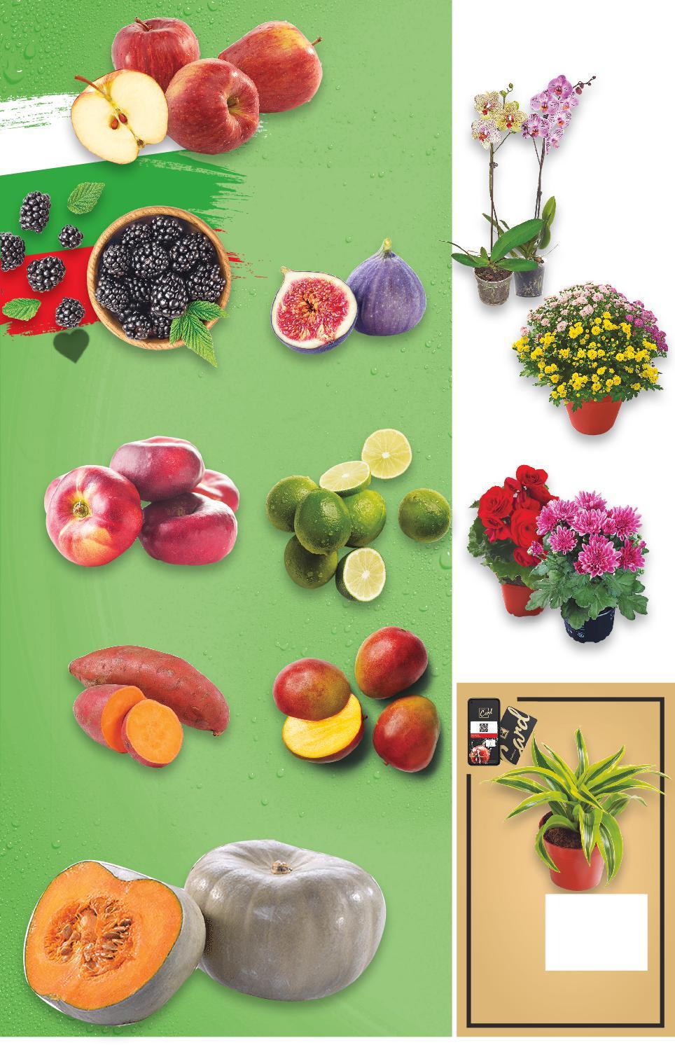 Отстъпката с Kaufland Card e изчислена спрямо стандартната текуща цена, на която продуктът се предлага в хипермаркета. *Със звездичка са обозначени артикулите, които са специално предложение до изчерпване на наличностите. Kaufland не носи отговорност за печатни грешки. 12,99* само 3,99 само 2,49 само -33% 0,99 1,49 3,99* само -28% 1,79 2,49 4,49* само -33% 0,99 1,49 -20% 1,99 2,49 -27% 3,99 с5,49 5амо ,49 само 0,69 само 1,69 само ФаленопсисОрхидея Стайно растение Ø12 см бр. картофиСладки Клас: I кг Манго Клас: I едър размер бр. Смокини Клас: I бр. Бегония или Гербер Стайно растение Ø 9 см бр. Ябълки Гала Клас: I кг видоверазличниХризантема (без ØрастениеГрадинскокашпа)12см бр. СамсонТиква Клас: I кг бр.Ø12растениеСтайноДРАЦЕНАсм Цена с KAUFLAND CARD Лимети Клас: I бр. (1 бр. = 0,69) Къпини Клас: I 125 г в опаковка (1 кг = 13,52) ДонътНектарини Клас: I 500 г в опаковка (1 кг = 3,98) ЦВЕТЯ ОТ СРЯДА 24.08от района на гр. Първомай от района на гр. Попово от района на с. Иванча S9-BG-KW34-LFT-OGP_R-1000-10 9