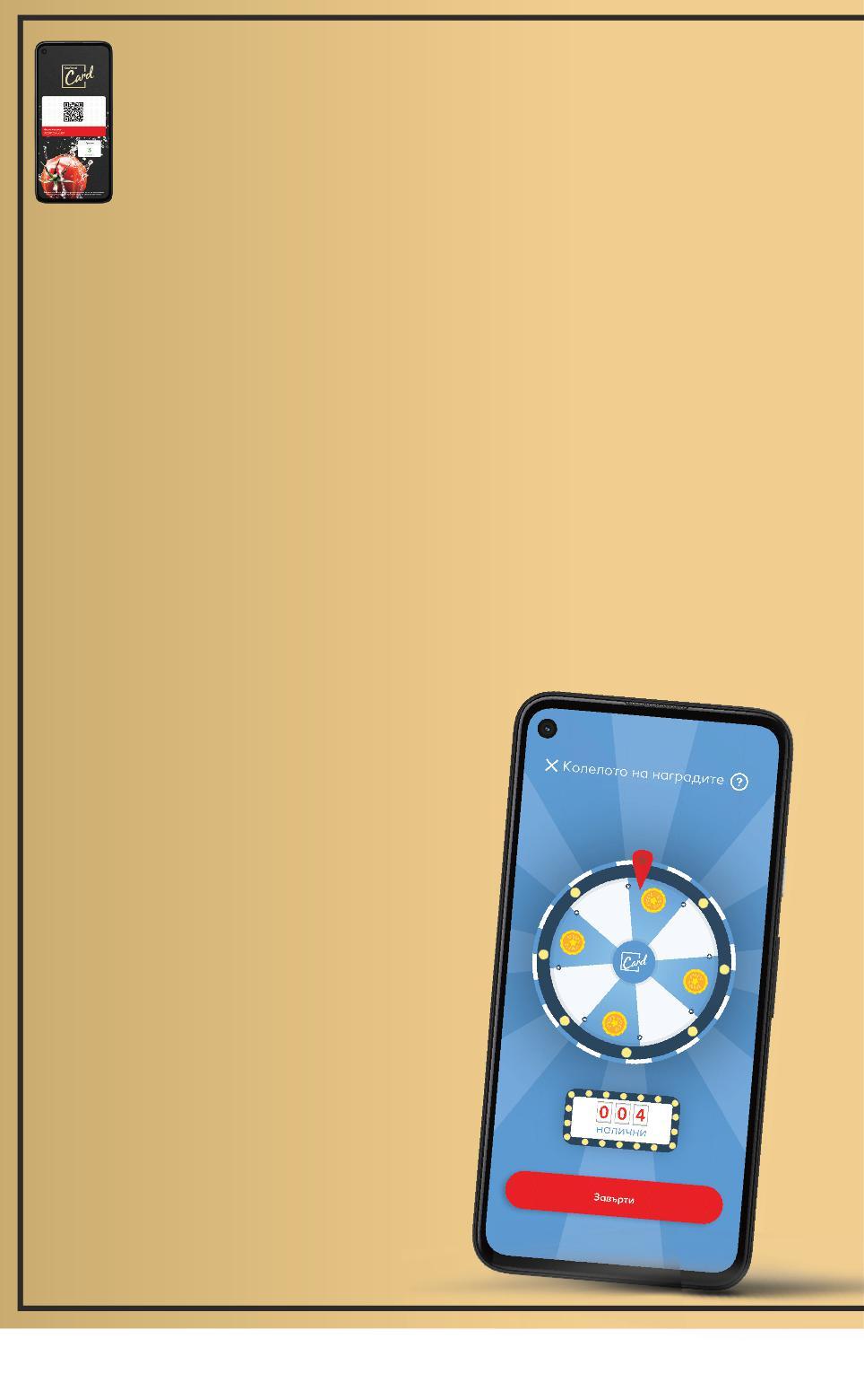 Цените са валидни за посочените на последна страница хипермаркети. Стоките се продават в количества, обичайни за едно домакинство. Всички цени са в лева с включен ДДС. Всички артикули се предлагат без декорация. Снимките са примерни. СПЕЧЕЛИ ПРОДУКТ ЗА 1 СТОТИНКА ЗАВЪРТИ КОЛЕЛОТО НА НАГРАДИТЕ САМО С ДИГИТАЛНА KAUFLAND CARD kaufland.bg/kaufland-card СКАНИРАЙ ДИГИТАЛНАТА КАРТА привсяко първо пазаруване за деня и отключи Колелото на наградите 1 ЗАВЪРТИ КОЛЕЛОТО и провери дали печелиш купон 2 ВСЕКИ ПЕТИ ПЕЧЕЛИ купон на стойност 1 стотинка 3 Играта е валидна в периода от 22.08.2022 г. до 11.09.2022 г. Правото на завъртане на “Колелото на наградите” ще се отключва веднъж дневно при първата покупка, при която е използвана дигитална Kaufland Card и ще бъде валидно в рамките на 48 часа след покупката. Завъртането може да донесе награда купон за покупка на определен продукт за 0,01 лв. Спечеленият купон е валиден 7 дни от датата на спечелване. са а хип ти в колич ства, обичай о ство определен продукт за 0,01 лв Спечеленият купон е валиден 7 дни от датата на спечелване S44-BG-KW34-LFT-WHEEL_L-1000-10 44
