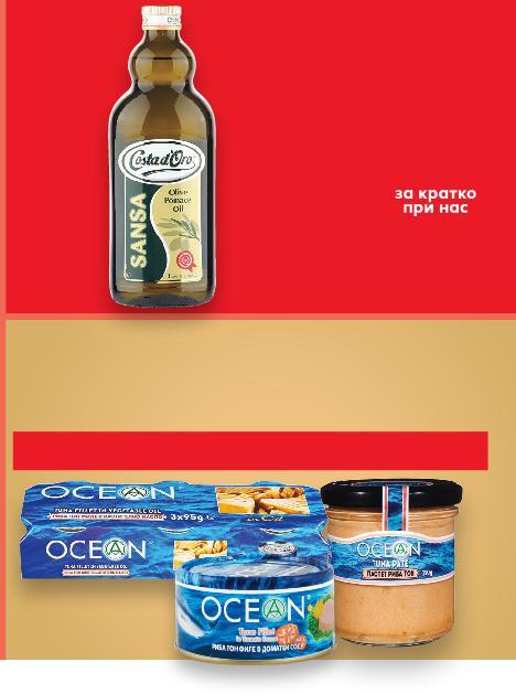 за кратко при нас за кратко при нас за кратко при нас за кратко при нас за кратко при нас ОТ ЧЕТВЪРТЪК, 04.05.2023 ДО НЕДЕЛЯ, 07.05.2023 Всички Kaufland Card отстъпки са изчислени спрямо стандартната текуща цена, на която продуктът се предлага в хипермаркета *Със звездичка са обозначени артикулите, които са специално предложение до изчерпване на наличностите. Kaufland не носи отговорност за печатни грешки. ички -30% ОТСТЪПКА С KAUFLAND CARD ЗА ИЗБРАНИ ПРОДУКТИ OCEAN *Със звездичка са обозначени артикулите, които са специално предложение до изчерпване на наличностите за кратко при нас 10,99* -22% 4,99 6,45 -44% 7,99 14,49 -30% 0,69 0,99 -23% 1,29 1,69 2,95 3,99 12,99 7,99 -26% -38% Пилешко бонфиле охладено кг (1 кг = 10,99) TUBORG Бира 4,6% vol 4 х 0,5 л кен (1 л = 2,50) COSTA D‘ORO Маслиново масло от маслиново кюспе 1 л (1 л = 7,99) Хлебче с гауда 80 г (1 кг = 8,63) ТОПАЗ МЕЛ Пшенично брашно тип 500 1 кг (1 кг = 1,29) Домати Клас: I кг (1 кг = 2,95) ЕЛЕНА Сирене от краве мляко метална кутия 500 г (1 кг = 15,98) ПРОМОПАКЕТ S39-BG-KW18-LFT-WEEK_R-1000-10 39