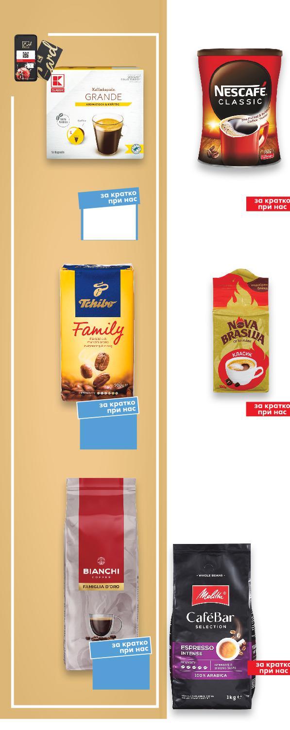 лалета различни цветове 35 см 7 лалета в букет LAVAZZA Мляно кафе Crema e Gusto 4 х 250 г (1 кг = 19,99) Свински котлет маринован с подправки и див чесън кг (1 кг = 11,99) COCA COLA Газирана напитка 5 + 1 х 0,330 л кен (1 л = 3,14) Грил тиган лят алуминий 28 х 28 см Цена с KAUFLAND CARD ПРОМОПАКЕТ ПРОМОПАКЕТ Клас: I ИНФОРМИРАЙ СЕ ЗА KAUFLAND ИЗГОДНИТЕ ЦЕНИ И ВЪВ VIBER АБОНИРАЙ СЕ ЗА НАШАТА СЕДМИЧНА БРОШУРА СОФИЯ,жк Банишора, ул. Скопие 1 , жк Бъкстон, ул. Тодор Каблешков 3, жк Дружба 2, ул. Хайделберг 1 , жк Крива Река, бул. Ген. Тотлебен 36 , жк Люлин 7, бул. Петър Дертлиев 56 , жк Малинова