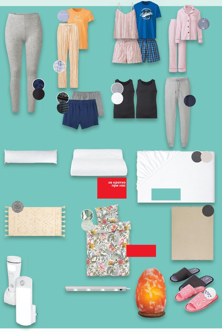 Цените са валидни за посочените на последна страница хипермаркети. Стоките се продават в количества, обичайни за едно домакинство. Всички цени са в лева с включен ДДС. Всички артикули се предлагат без декорация. Снимките са примерни. Нашите марки 11,99 14,99* 29,99* 22,99 14,99* 11,99* 19,99* 42,99* 15,99* 19,99* 24,99* 7,99* 17,99* 19,99* 14,99* 29,99* 11,99* 19,99 24,99 -20% 2 броя 2 броя 2 части 2 части 24,99* 29,99 -23% LIV&BO Поддържаща възглавница за врат Polygiene® 50 х 36 см 180 - 200 x 200 см 140 - 160 x 200 см 90 - 100 x 200 см OYANDA/ TOWNLAND Пижама 36 - 58 OYANDA/ TOWNLAND Пижама 36 - 58 OYANDA Екип плюш, 36 - 46 OYANDA Клин S - 3ХL TOWNLAND Боксер M - 7XL TOWNLAND Потник XXL - 4XL TOWNLAND Спортен панталон XXL - 4XL LIV&BO Възглавница Polygiene® 40 x 145 см LIV&BO Чаршаф с ластик LIV&BO Килим 80 x 150 см LIV&BO Спален комплект 150 х 200 см LIV&BO LED лента 54,5 x 5,3 x 2,7 см LIV&BO Лампа солен кристал, 15 W, E14 Пантофи 37 - 45 Мултифункционална лампа 2 в 1 LIV&BO Одеяло муселин, 130 х 170 см S36-BG-KW18-LFT-NFP2_L-1000-10 36