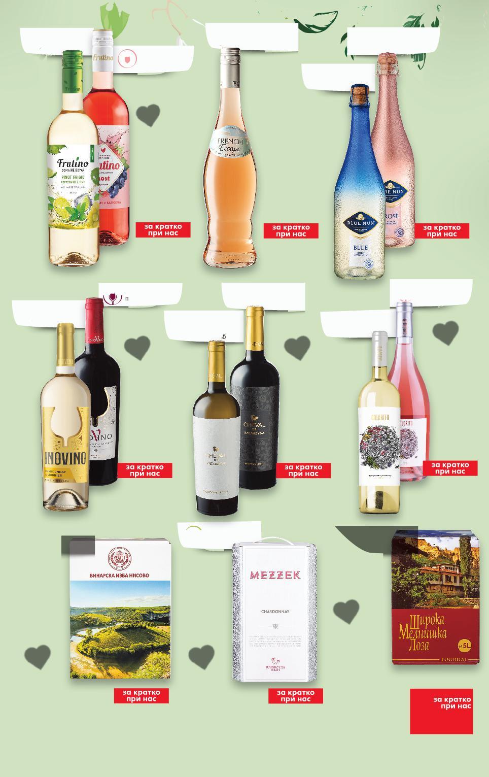 Свеж аромат на мента и печени плодове Тропически, свеж и балансиран на бели и на зрели жълти цитруси, аромат на и Аромат на червени плодове и сухи листа Аромат и вкус на цитрусови плодове Аромат на зрели жълти плодове жълти плодове нотки на Аромат на зрели -30% 13,99 19,99 -23% 6,49 8,49 -32% 7,99 11,89 -36% 12,99 20,49 -29% 8,99 12,79 -25% 6,69 8,99 -35% 10,99 16,99 -26% 14,99 20,49 20,99 13,99 -33% FRENCH ESCAPE Розе Франция, Прованс 0,75 л (1 л = 18,66) FRUTINO Напитка на винена основа различни видове Тракийска низина 0,75 л (1 л = 8,66) НИСОВО Червено, бяло вино или