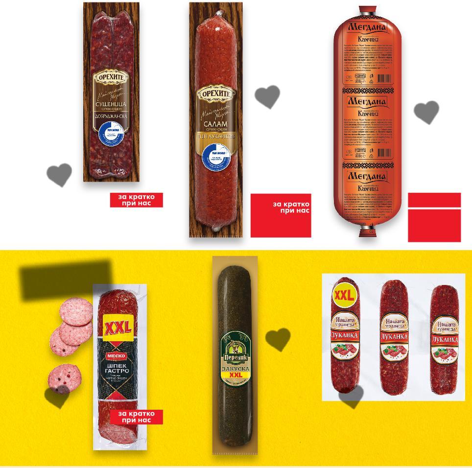 Цените са валидни за посочените на последна страница хипермаркети. Стоките се продават в количества, обичайни за едно домакинство. Всички цени са в лева с включен ДДС. Всички артикули се предлагат без декорация. Снимките са примерни. -20% 2,29 2,89 -28% 2,99 4,19 -23% 4,49 5,89 -40% 2,99 4,99 -33% 3,99 5,99 -30% 4,19 5,99 -50% 10,99 21,99 -25% 1,49 1,99 KRI KRI Протеинов йогурт различни видове 170 г (1 кг = 13,48) ЗОРА Кокоши яйца подово отглеждане размер М 10 бр (1 бр. = 0,45) САМИ-М Панирани пилешки хапки замразени 500 г (1 кг = 5,98) НАРОДЕН Шпек Класик или Бургас вакуум опаковка 220 г (1 кг = 18,14) EXQUISA Скир натурален 400 г (1 кг = 7,48) ФАМИЛИЯ Точени кори МАХI 2 x 400 г (1 кг = 5,24) СТАРИЯ ЛОВЕЦ Бански старец вакуум опаковка 600 г (1 кг = 18,32) Разбит хайвер различни видове 120 г (1 кг = 12,42) Цена с KAUFLAND CARD Цена с KAUFLAND CARD Цена с KAUFLAND CARD Цена с KAUFLAND CARD Цена с KAUFLAND CARD Цена с KAUFLAND CARD Цена с KAUFLAND CARD Цена с KAUFLAND CARD 1
