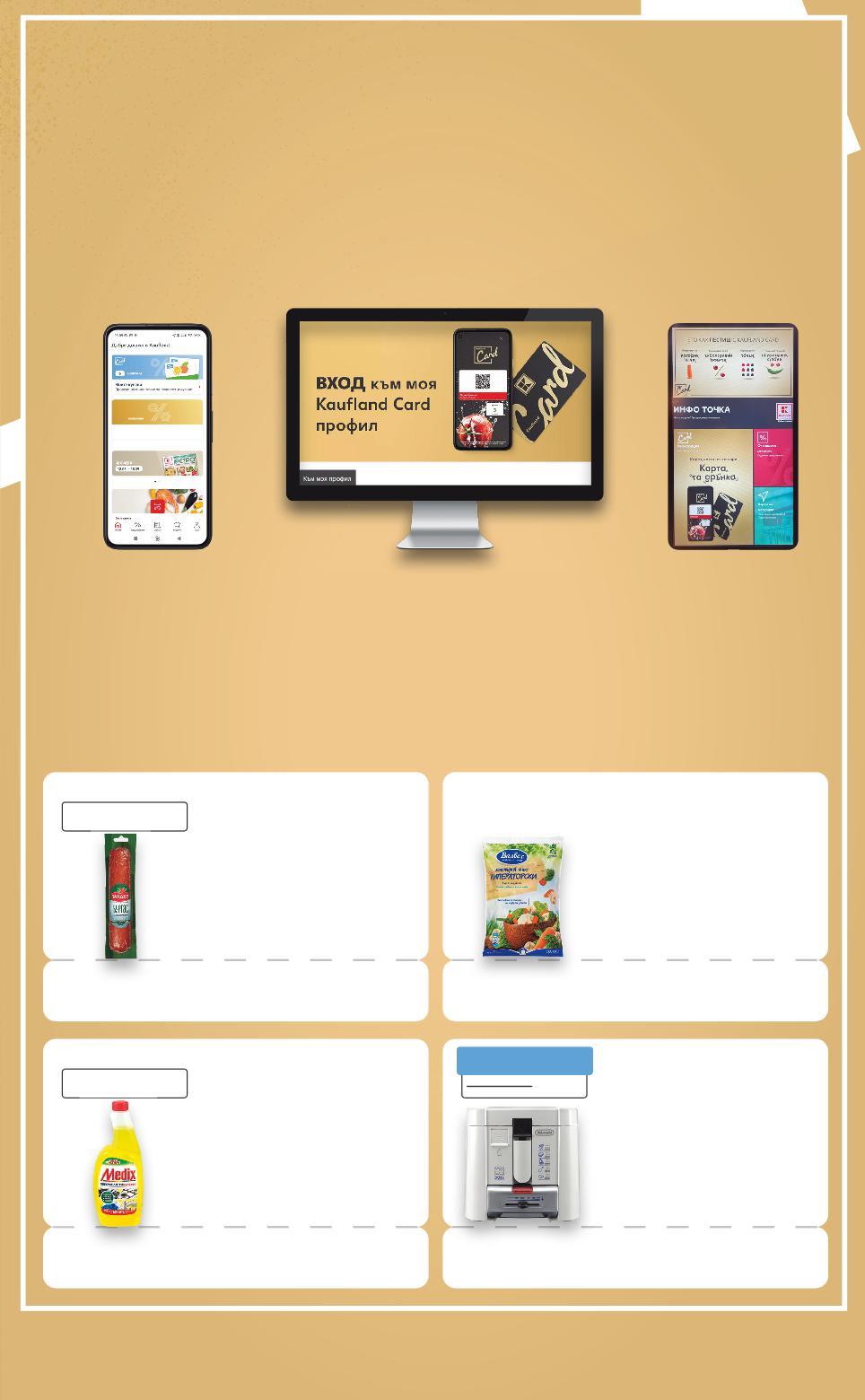 Всички Kaufland Card отстъпки са изчислени спрямо стандартната текуща цена, на която продуктът се предлага в хипермаркета. *Със звездичка са обозначени артикулите, които са специално предложение до изчерпване на наличностите. Kaufland не носи отговорност за печатни грешки