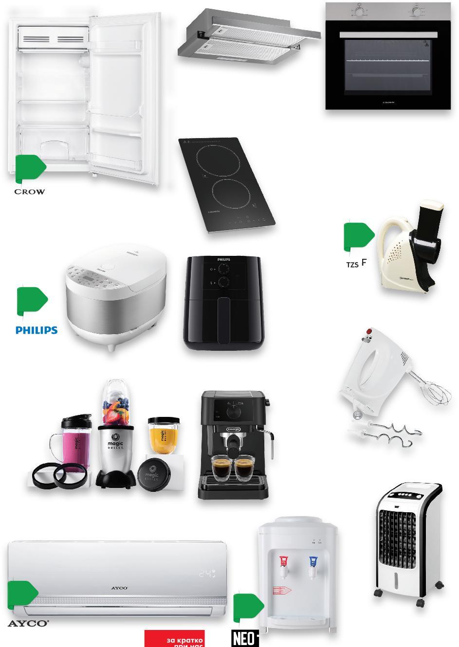 при нас Цените са валидни за посочените на последна страница хипермаркети. Стоките се продават в количества, обичайни за едно домакинство. Всички цени са в лева с включен ДДС. Всички артикули се предлагат без декорация. Снимките са примерни. 499,90* 179,90 69,95 89,99 124,90 69,99* 179,90 279,90 39,99 179,90 69,99 59,99* 199,90* Климатик AIC-12TB15 инверторен, вътрешно / външно тяло: 77,7×25×20,1 см 77,7×49,8×29 см, 3,40kW / 3,42kW 249,90 -28% 159,90 -56% 99,99 -10% 169,90 -26% 279,90 -35% 319,90 59,99 219,90 -12% -33% -18% 119,90 -41% Автомат за вода WDE-57TTW Миниладилник DF-90W 48 х 85 х 45 см, 90 л Електрическо ренде FA-5112-2 Мултикукър HD471340 5 л, 2000 W Телескопичен аспиратор
