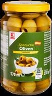 Oliven natur, gefüllt oder mariniert, versch. Sorten, z. B. mit Weichkäse je 150-g-Packg. (1 kg = 10.60)