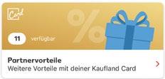 EXKLUSIVE PARTNERVORTEILE IN DER KAUFLAND-APP! ✓ Schneller und einfacher Zugang zu unseren Partnervorteilen ✓ Exklusiv für Kaufland Card Mitglieder ✓ Aktuell zum Beispiel: Noch keine Kaufland-App? Jetzt downloaden oder Vorteile im Webportal einsehen unter kaufland-card.de/partner 12.99 KNÜLLER-PREIS nur BENEDIKTINER Hell helles Lagerbier (+ 3.10 Pfand) Ka. 20 x 0,5-l-Fl. (1 l = 1.30) COUNTRYSIDE® Hängesitz mit Armlehnen aus Birkenholz, Baumwolle und Polyester, für max. 110 kg, ca. B 98 x H 116 x T 61 cm, 3 Jahre Garantie je 13.99* 1/2 PREIS 27.99 HARVEY MILLER POLO CLUB T-Shirt aus Baumwolle, mit Rundhalsausschnitt, M - XXL je Marokk. Bohnen breit oder Buschbohnen Kl. I je 500-g-Packg. (1 kg = 3.98) 1.99* AKTION nur Span./ marokk. Auberginen oder Zucchini, lose Kl. I je kg 0.99* AKTION nur Chil. Tafeltrauben rot/blau, lose Sorte laut Auszeichnung, Kl. I kg 3.99* AKTION nur 4.99* -66% UVP 14.95 FSC ® N001539 7 7_D19_3070_KP3 Alle Filialangebote auch unter filiale.kaufland.de Weitere Informationen zu Produktsiegeln finden Sie unter kaufland.de/siegel