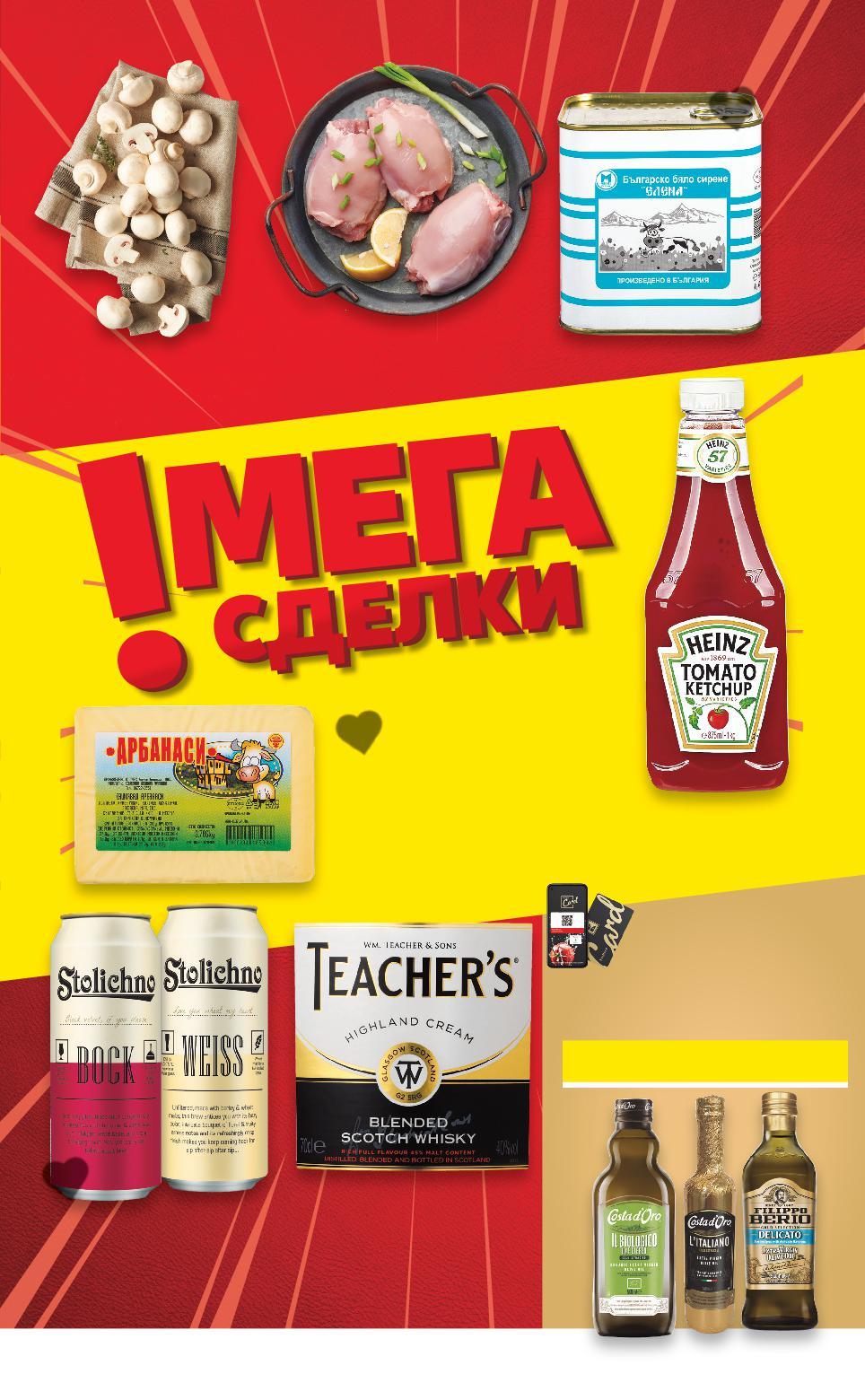 - 0% ОТСТЪПКА С KAUFLAND CARD ЗА МАСЛИНОВИ МАСЛА 500 МЛ С МАРКИ COSTA D'ORO И FILIPPO BERIO 40% Всички Kaufland Card отстъпки са изчислени спрямо стандартната текуща цена, на която продуктът се предлага в хипермаркета *Със звездичка са обозначени артикулите, които са специално предложение до изчерпване на наличностите Kaufland не носи отговорност за печатни грешки. ички ъс -30% 12,49 17,99 9,99 само -34% 2,79 4,29 -26% 15,49 20,99 -17% 1,69 2,05 -34% 15,99 24,59 -39% 6,69 10,99 1 кг STOLICHNO Бира Bock или Weiss 4,2% или 6,5% vol 0,5 л кен (1 л = 3,38) TEACHER`S Шотландско уиски 40% vol 0,7 л (1 л = 22,13) ЕЛЕНА Сирене от краве мляко метална кутия 800 г (1 кг = 15,62) Пилешки обезкостен бут без кожа охладен кг (1 кг = 9,99) Гъби печурки Клас: I 500 г в опаковка (1 кг = 5,58) АРБАНАСИ Кашкавал от краве мляко вакуум опаковка около 700 г кг (1 кг = 15,99) ОТ ЧЕТВЪРТЪК, 09.03.2023 ДО НЕДЕЛЯ, 12.03.2023 О Я Ч ТВЪРТЪК ДО НЕДЕЛЯ HEINZ Кетчуп 1 кг (1 кг = 6,69) S45-BG-KW10-LFT-WEEK_R-1000-10 45