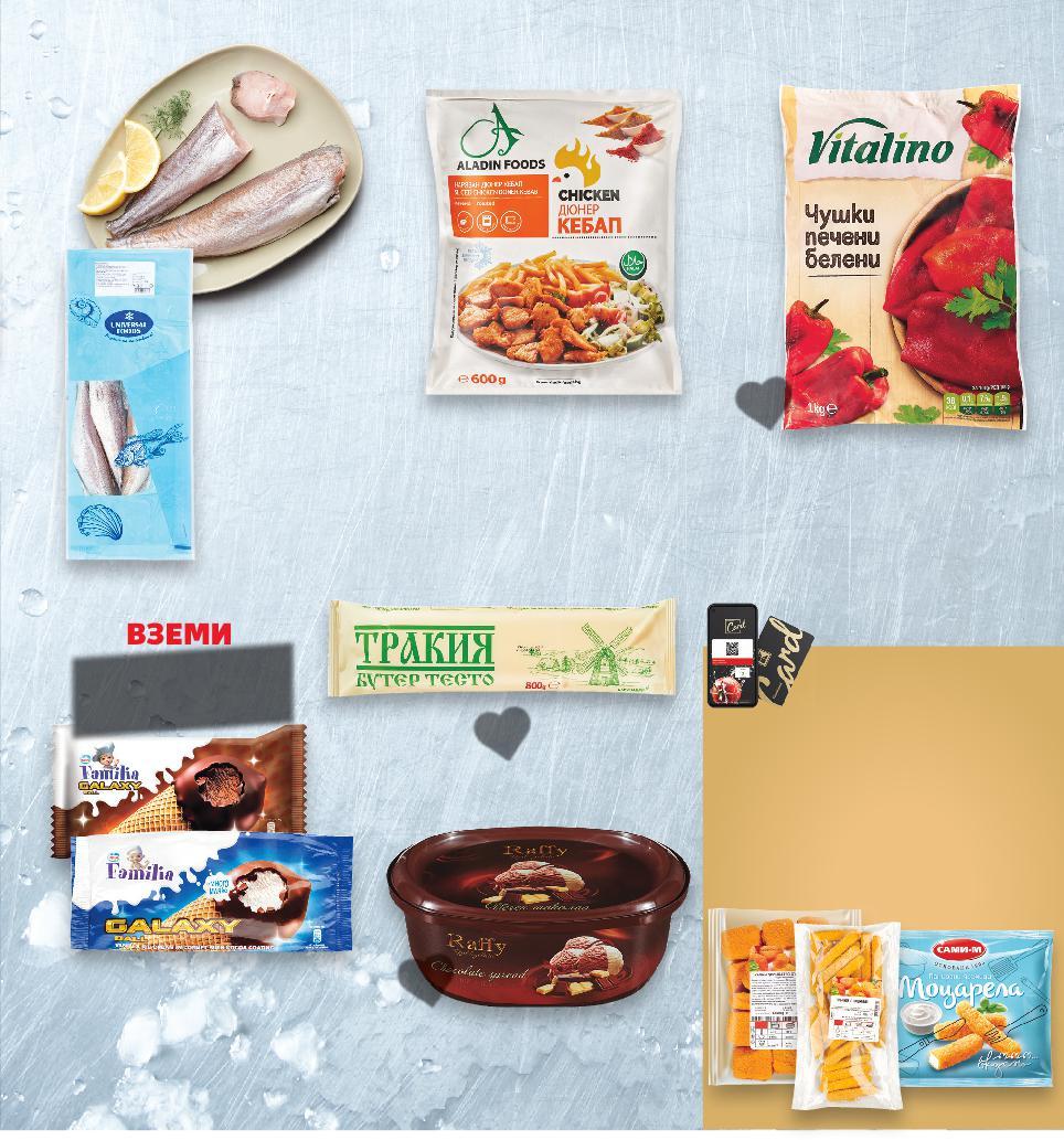 *Със звездичка са обозначени артикулите, които са специално предложение до изчерпване на наличностите. Kaufland не носи отговорност за печатни грешки. -28% 4,99 6,99 -24% 5,99 7,89 -26% 4,39 5,99 2,49* само 10,49* само -24% 2,49 3,29 -26% 3,69 4,99 3,79 само -0% 11,49* само 10,99* само -37% 7,99 12,69 ДАНЕЛ Рибни пръстчета замразени XXL опаковка кг (1 кг = 4,99) ЗДРАВЕЦ Топено сирене пушено 500 г (1 кг = 11,98) ФАМИЛИЯ Точени кори Maxi 2 x 400 г (1 кг = 5,49) Бутертесто охладено 375 г