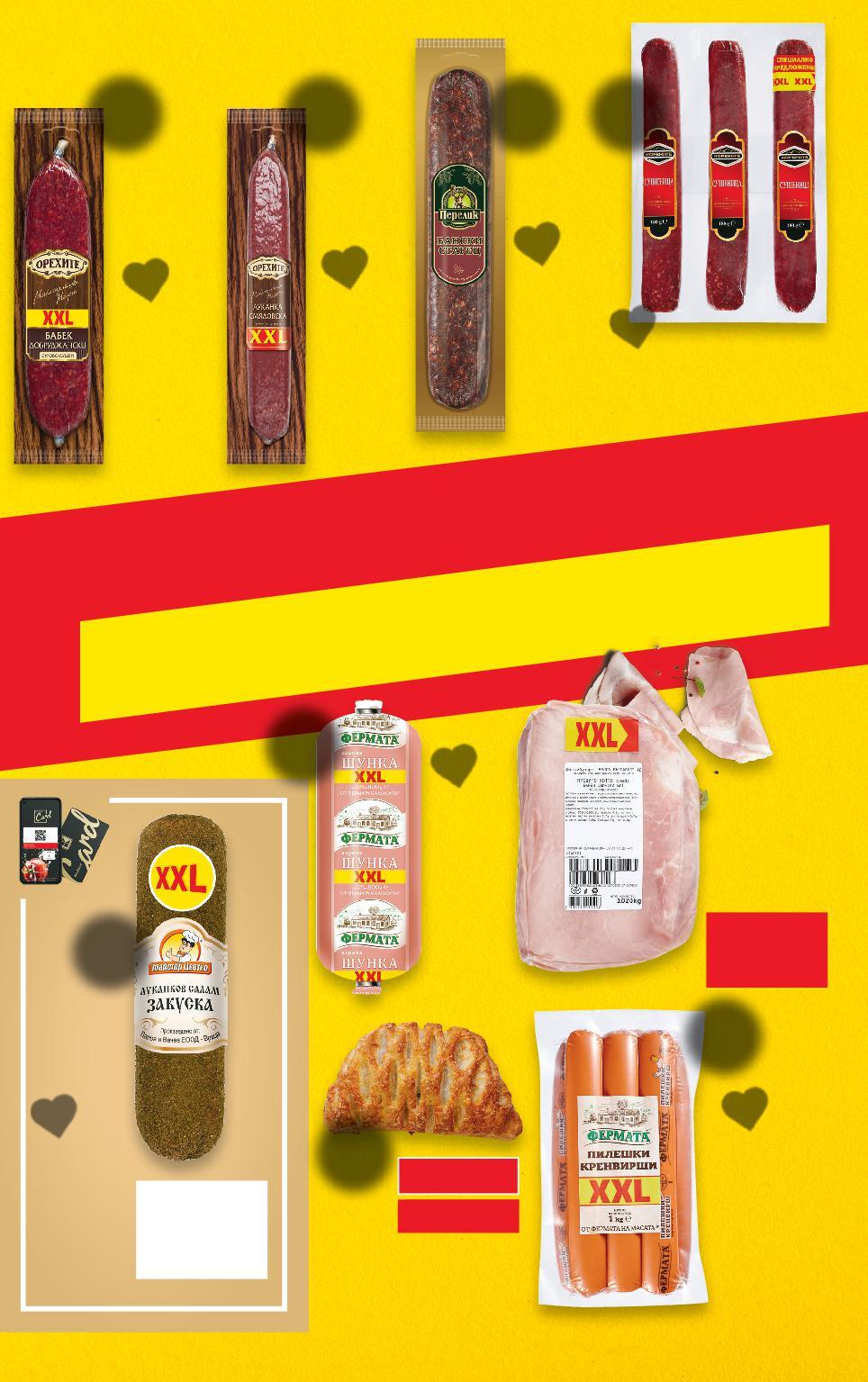 XXL РАЗМЕР ИЗГОДНО Цените са валидни за посочените на последна страница хипермаркети. Стоките се продават в количества, обичайни за едно домакинство. Всички цени са в лева с включен ДДС. Всички артикули се предлагат без декорация. Снимките са примерни. 8,79* само 4,99* само -35% 1,29 1,99 8,99* само 4,99* само 7,69* само 9,99* 11,99 само само -34% 8,49 12,99 само ОРЕХИТЕ Луканка Смядовска 350 г (1 кг = 25,12) ФЕРМАТА Кренвирши пилешки 1 кг (1 кг = 4,99) Закуска Болонезе 115 г (1 кг = 11,22) Прошуто кото слайс XXL вакуум опаковка около 1 кг кг (1 кг = 8,99) ФЕРМАТА Шунка вакуум опаковка 800 г (1 кг = 6,24) МОРЕНИТЕ Сушеница 3 х 180 г (1 кг = 14,25) ПЕРЕЛИК Бански старец 500 г (1 кг = 23,98) ОРЕХИТЕ Бабек Добруджански 350 г (1 кг = 28,55) МАЙСТОР ЦВЕТКО Салам Закуска 600 г (1 кг = 14,15) Цена с KAUFLAND CARD