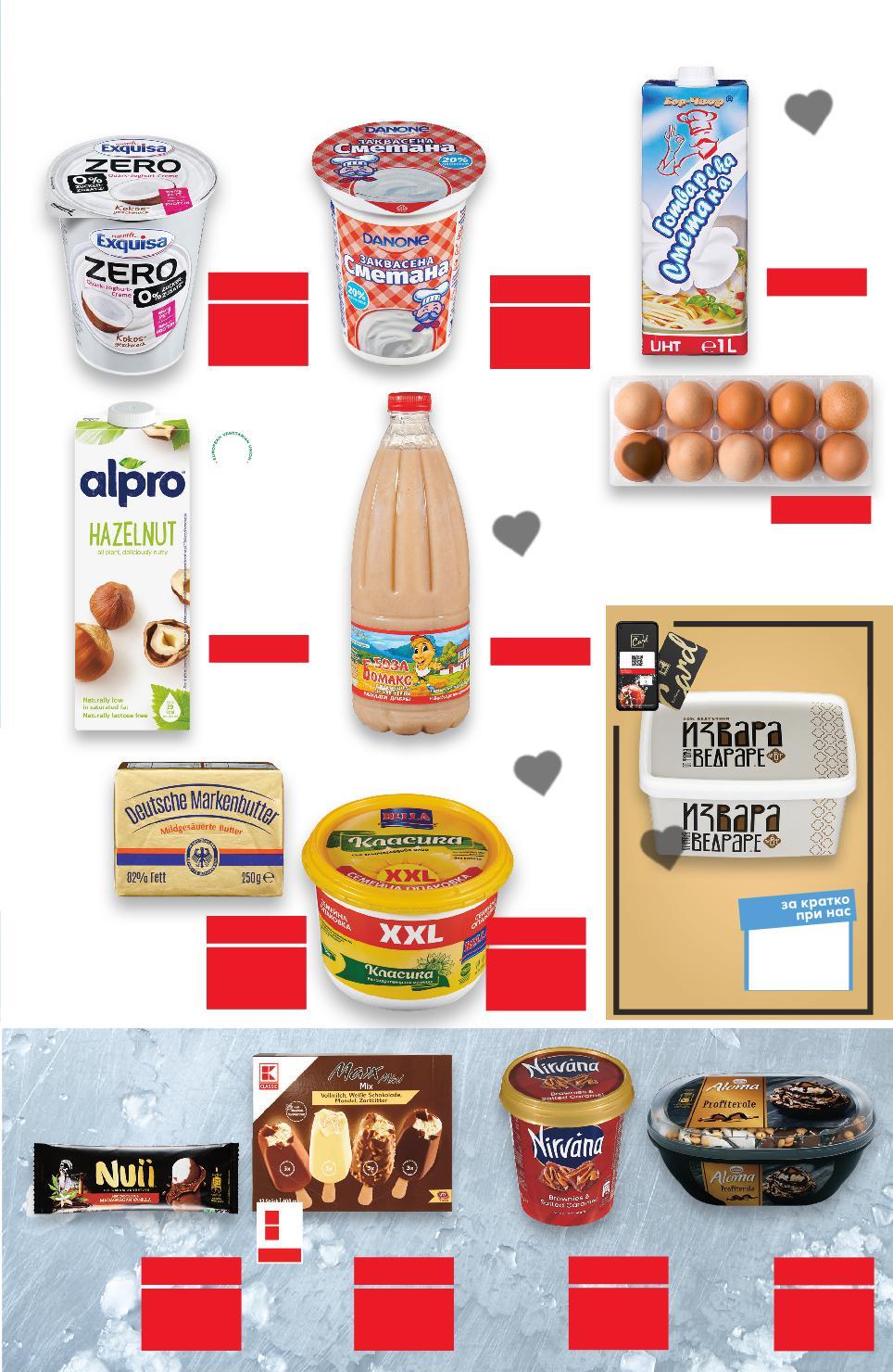 0,95 1,39 -31% -28% 2,15 2,99 -22% 1,35 1,75 -29% 3,25 4,59 -26% 2,19 2,99 -28% 1,99 2,79 -30% 4,29 6,15 -35% 4,99 7,79 -31% 1,99 2,89 от собствена ферма БУЛГАРЧЕ Кисело мляко 2% масленост 400 г (1 кг = 2,38) ПЪРШЕВИЦА Овче кисело мляко 6,5% масленост по БДС 400 г (1 кг = 5,38) ВЕРЕЯ Кисело