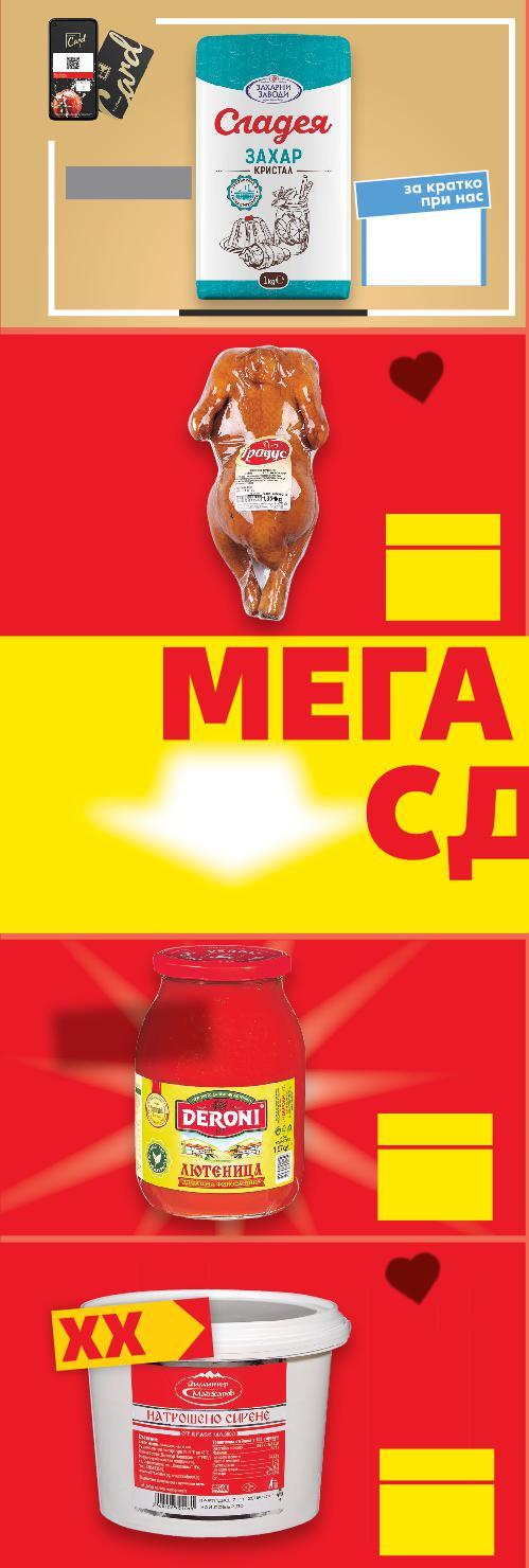 за кратко при нас за кратко при нас за кратко при нас за кратко при нас Всички Kaufland Card отстъпки са изчислени спрямо стандартната текуща цена, на която продуктът се предлага в хипермаркета. *Със звездичка са обозначени артикулите, които са специално предложение до изчерпване на наличностите. Kaufland не носи отговорност за печатни грешки. тази седмица -25% 7,49 9,99 15,99 -25% 11,99 15,99 -40% 8,99 14,99 -20% 3,99 4,99 -40% 5,99 9,99 -20% 2,29 2,89 -26% 16,99 22,99 ДО 10 БРОЯ НА ПОКУПКА** **При покупка над 10 бр. всеки следващ продукт се продава на стандартна цена. ГРАДУС Пиле варено-пушено кг (1 кг = 7,49) SUNNY DOG Суха храна за кучета 10 кг (1 кг = 1,60) ДИМИТЪР МАДЖАРОВ Сирене от краве мляко натрошено