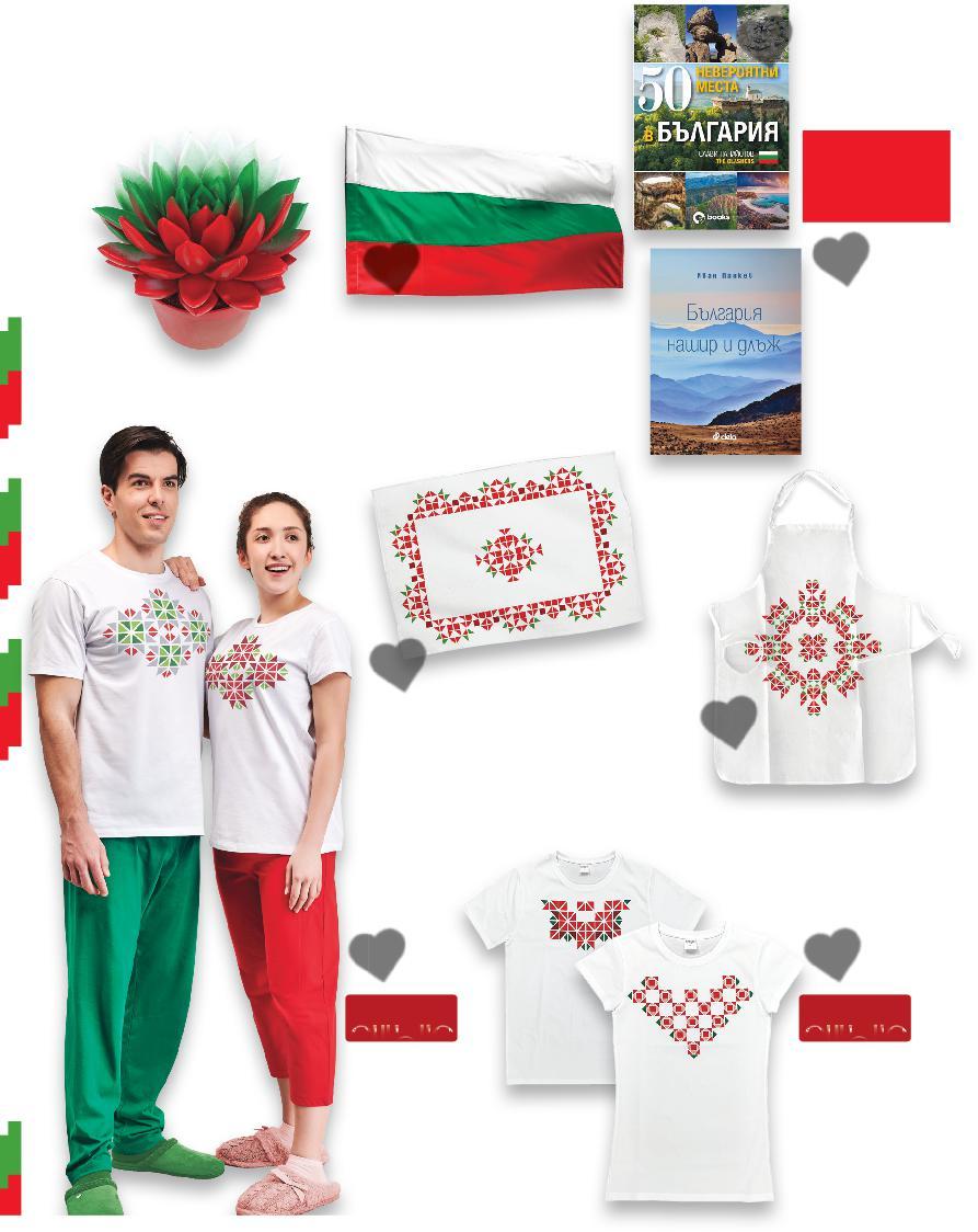 НИ Е НА СЪРЦЕ Книга България нашир и длъж Книга 50 невероятни места в България Детска образователна игра Цар на историята Детска образователна игра Юначе или Събери България 36,00 само 27,99 само -25% 25,99 35,00 -25% 16,49 22,00 0,39 само 22,99 само 15,99 само -25% 5,99 7,99 7,99* само 8,99 1,29 само само -25% 2,99 3,99 ✓ 100% памук ✓ 100% памук Знаме на Република България 70 х 120 см Мартеница гривна с фигурка 12 бр. в опаковка Престилка 60 х 80 см Пижама S - 3XL Тениска S - XXXL 12 броя Мартеница гривна 1 бр. Ешеверия „България“ Стайно растение Ø 12 см бр. Кухненска кърпа 50 х 70 см ОТ ПОНЕДЕЛНИК, 27.02.2023 ДО НЕДЕЛЯ, 05.03.2023 S48-BG-KW09-LFT-WEEK_L-1000-10 48