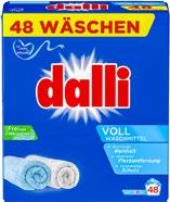 DALLI Voll- oder Colorwaschmittel Pulver 3,12 kg oder flüssig 2,75 l, = 48 - 50 Anwendungen, versch. Sorten je (pro Anwendung = 0.12 - 0.13)
