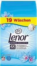 LENOR Voll- oder Colorwaschmittel Pulver 1,235 kg, flüssig 1,045 l oder Pods 333,2 g, = 14 - 19 Anwendungen, versch. Sorten je (pro Anwendung = 0.19 - 0.25)