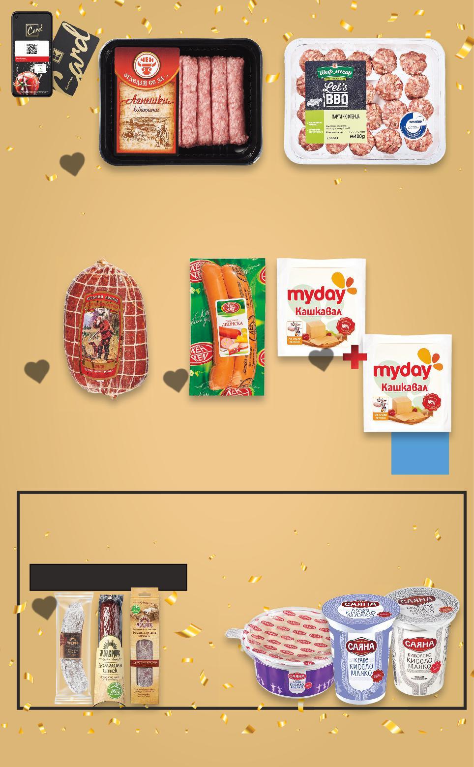 Цените са валидни за посочените на последна страница хипермаркети. Стоките се продават в количества, обичайни за едно домакинство. Всички цени са в лева с включен ДДС. Всички артикули се предлагат без декорация. Снимките са примерни. -25% -25% ОТСТЪПКА С KAUFLAND CARD ОТСТЪПКА С KAUFLAND CARD ЗА ИЗБРАНИ КОЛБАСИ МОЛЕРИТЕ ЗА КИСЕЛИ МЛЕКА САЯНА -16% 4,99 5,99 -16% 4,99 5,99 -26% 5,49 7,49 -50% 10,99 21,99 -50% 13,99 27,98 ЧЕХ Агнешки кебапчета 400 г (1 кг = 12,48) КЕН Лионска наденица вакуум опаковка 390 г (1 кг = 14,08) СТАРИЯ ЛОВЕЦ Странджанско дядо вакуум опаковка 600 г (1 кг = 18,32) Парти кюфтенца 400 г (1 кг = 12,48) MY DAY Кашкавал от краве мляко 2 х 400 г (1 кг = 17,49) Цена с KAUFLAND CARD Цена с KAUFLAND CARD Цена с KAUFLAND CARD Цена с KAUFLAND CARD Цена с KAUFLAND CARD НА ЦЕНАТА НА 1 ВЗЕМИ 2 2 1 S4-BG-KW21-LFT-KCARD_1_1_L-1000-10 4