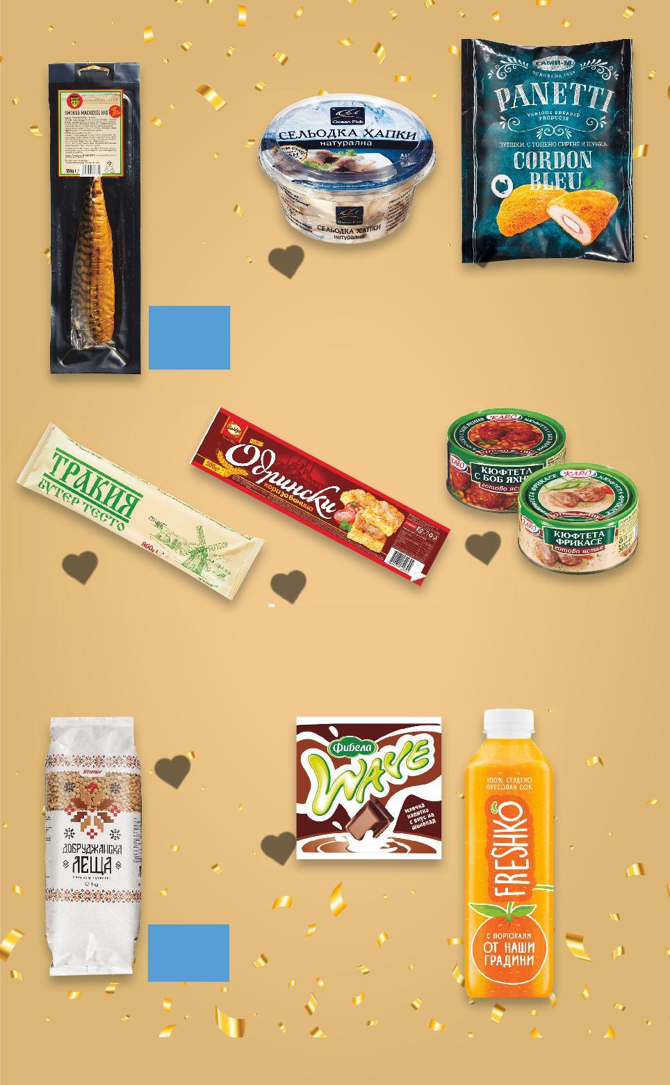 Цените са валидни за посочените на последна страница хипермаркети. Стоките се продават в количества, обичайни за едно домакинство. Всички цени са в лева с включен ДДС. Всички артикули се предлагат без декорация. Снимките са примерни. ОБНОВИ ДОМАШНАТА