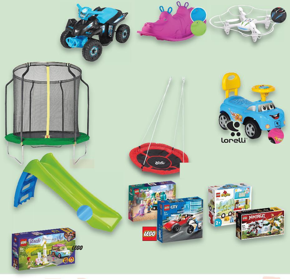 Цените са валидни за посочените на последна страница хипермаркети. Стоките се продават в количества, обичайни за едно домакинство. Всички цени са в лева с включен ДДС. Всички артикули се предлагат без декорация. Снимките са примерни. ОБНОВИ ДОМАШНАТА БИБЛИОТЕКА ЗА 24 МАЙ Виж още оферти за празника 299,90* 69,99* 69,99* 17,99 6,99 34,99 19,99 2,99 18,00 21,99 34,99 27,99* 139,90* 49,99* 1+ 4+ 6+ 3+ 9 м+ 2+ 34,99 21,99 -18% 8,99 -22% 44,99 -22% 25,00 -20% 3,99 -25% 29,99 43,99 -26% -20% Детска люлка двуместна, 45 x 36 x 103 см LOKO TOYS Електрическо ATV до 2 км/ч, 48 x 46 x 72 см до 30 кг Детска пързалка 116 х 63 х 36 см, до 25 кг Детски батут с мрежа Ø244 x 240 см, до 50 кг Люлка Ø113 см, до 150 кг Детски дрон с дистанционно, 4 степени