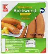 K-CLASSIC KäseBockwurst geräuchert, im Naturdarm 4 St. = 400-g-Packg. (1 kg = 6.73)