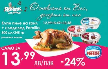 144 гр -28% 3 ,59 лв.|бр. предишна цена: 4,99 -20% 3 ,19 лв.|бр. предишна цена: 3,99 -15% 5 ,99 лв.|бр. предишна цена: 7,09 -29% 2 ,99 лв.|бр. предишна цена: 4,24 -31% 2 ,99 лв.|бр. предишна цена: 4,39 -30% 2 ,49 лв.|бр. предишна цена: 3,59 -20% 2 ,09 лв.|бр. предишна цена: 2,64 -20% * ГРУПОВО НАМАЛЕНИЕ. ЗА ДЕТАЙЛИТЕ ВИЖ ПОСЛЕДНАТА СТРАНИЦА НА БРОШУРАТА