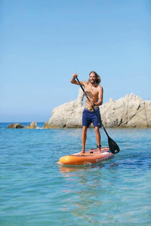 Inkl. Zubehör: Reißverschlussrucksack, Double-ActionPumpe, Paddel, Einschub-Mittelfinne, Sicherheitsleine Stand up Paddleboard Modell „Fusion“.