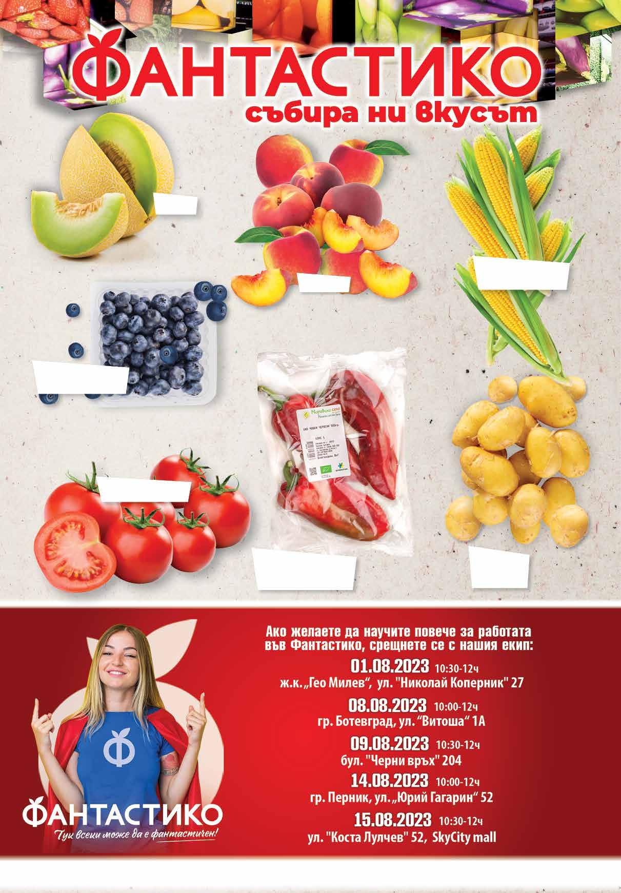 7 ТВ „Фантастико” не носи отговорност за допуснати печатни грешки. Количествата са лимитирани! Предложенията са валидни до сряда 22.00ч. на 02.08.2023 г. Продуктите се предлагат в следните филиали: Ф6 район Студентски, бул. Г.М. Димитров №77; Ф7 жк Овча купел 1, ул. Монтевидео №98; Ф11 жк Хаджи Димитър, ул. Васил Кънчев/ул. Баба Вида №29; Ф14 гр. Ботевград, ул. Витоша 1А; Ф16 жк Люлин 6, бул. Джавахарлал Неру №26А; Ф17 жк Надежда 3, бул. Хан Кубрат №26, до бл. 301; Ф18 жк Стрелбище, ул. Нишава №138; Ф19 кв Бояна, бул. Ал. Пушкин №64; Ф21 жк Младост 4, ул. Д-р Атанас Москов №15; Ф22 Студентски град, ул. Акад. Борис Стефанов №22; Ф28 жк Гео Милев, ул. Коста Лулчев №52, в сградата на Sky City Mall; Ф30 кв Драгалевци, бул. Черни връх №204; Ф33 бул. Симеоновско шосе 87А; Ф34 жк Хаджи Димитър, ул. Макгахан №81; Ф36 жк Дървеница, бул. Св. Климент Охридски №15; Ф38 жк Овча купел, ул. Любляна №42А; Ф39 жк Разсадника – Коньовица, ул. Хъшове №4; Ф40 жк Гео Милев, ул. Николай Коперник №27; Ф41 гр. Елин Пелин, ул. Витоша №7; Ф42 жк Младост 1, бул. Йерусалим №22; Ф43 кв. Манастирски ливади, ул. Пирин №51А Ф44 гр. Банкя, кв. Изгрев, ул. Стефан Стамболов №138; Ф45 гр. Перник, ж.к. Изток, ул. Юрий Гагарин №52.