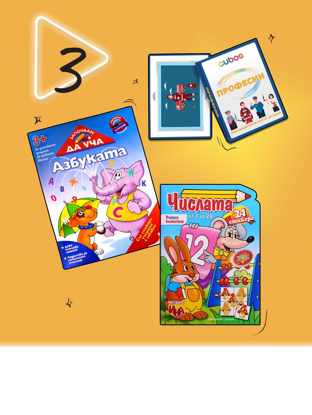 28 Научи повече office1.bg/back-to-school-2022тук: КНИЖКА ОЦВЕТЯВАНЕЗА 6610100465 – Стихчета за буквите 1 5525121490 – Стихчета за буквите 2 5525121491 – Стихчета за буквите 3 5525121498 – Песните, които пее всяко дете 2 5525121488 – Азбуката от А до Я 5525121489 – Рисувай с Цифрите • 4-8 години. • 16 страници. 096лв. 120лв. –20% • 4-7 години. УЧЕБНО ПОМАГАЛО 6614020011 – Думи –20% ИГРИ 399лв. 499лв. –20% 152лв. 167лв. –20%6618020102 - Цифрите 6614020032 - Ръкописните букви 6614020033 - Печатните букви ТЕТРАДКА ЗА УПРАЖНЕНИЕ ПЪЗЕЛ КУФАРЧЕ 120 пъзела. • 3-8Възраст:години. • 6-8Възраст:години. • 8 игри. • Възраст: 4-6 години. 9 игри. • Възраст: 5-7 години. 6611120078 - От А до Я - Буквите 6611120079 - Две и Две - Числата 792лв. 1090лв. –20% 5525121481 – Фина моторика 5525121482 – Приказни герои 600лв. 750лв. 639лв. 799лв. 6618020103 – Задачи