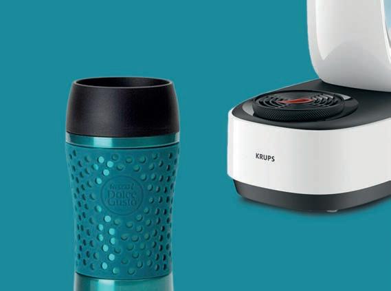 от други лица. Кооперация ”Панда“ не носи отговорност за допуснати грешки при отпечатване на брошурата. Безплатна доставка за цялата страна при поръчка на стоки над 100 лв. с ДДС и за мебели над 900 лв. с ДДС. Пълна информация за актуални цени, промоции, условия за доставка, монтаж и гаранция на съответните артикули може да откриете на www.o ce1.bg, чрез обаждане на 0700 10 700 или във всеки магазин от веригатa . Разговорите към национален номер 0700 10 700 са без допълнително оскъпяване на услугата, като се таксуват на цената на един градски разговор съгласно тарифния план на абоната. КОМПЛЕКТ Кафе машина Krups® NESCAFÉ® Dolce Gusto Infinissima + Термочаша Travel Mug Ocean Turquoise + 2 кутии кафе капсули 2125020013 2125020014