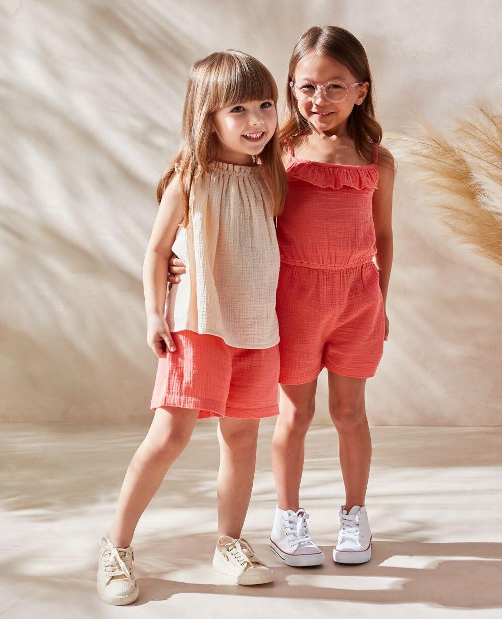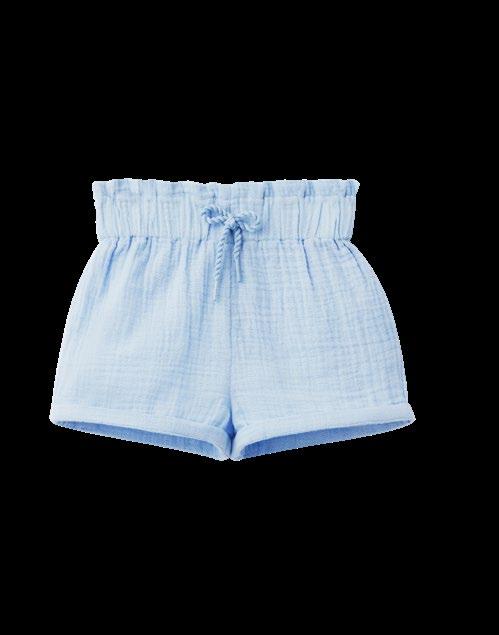 за момичета, от муселин, комплектът включва: топ с волан на деколтето и къси панталони с подгънати крачоли, размери: 74-98 см