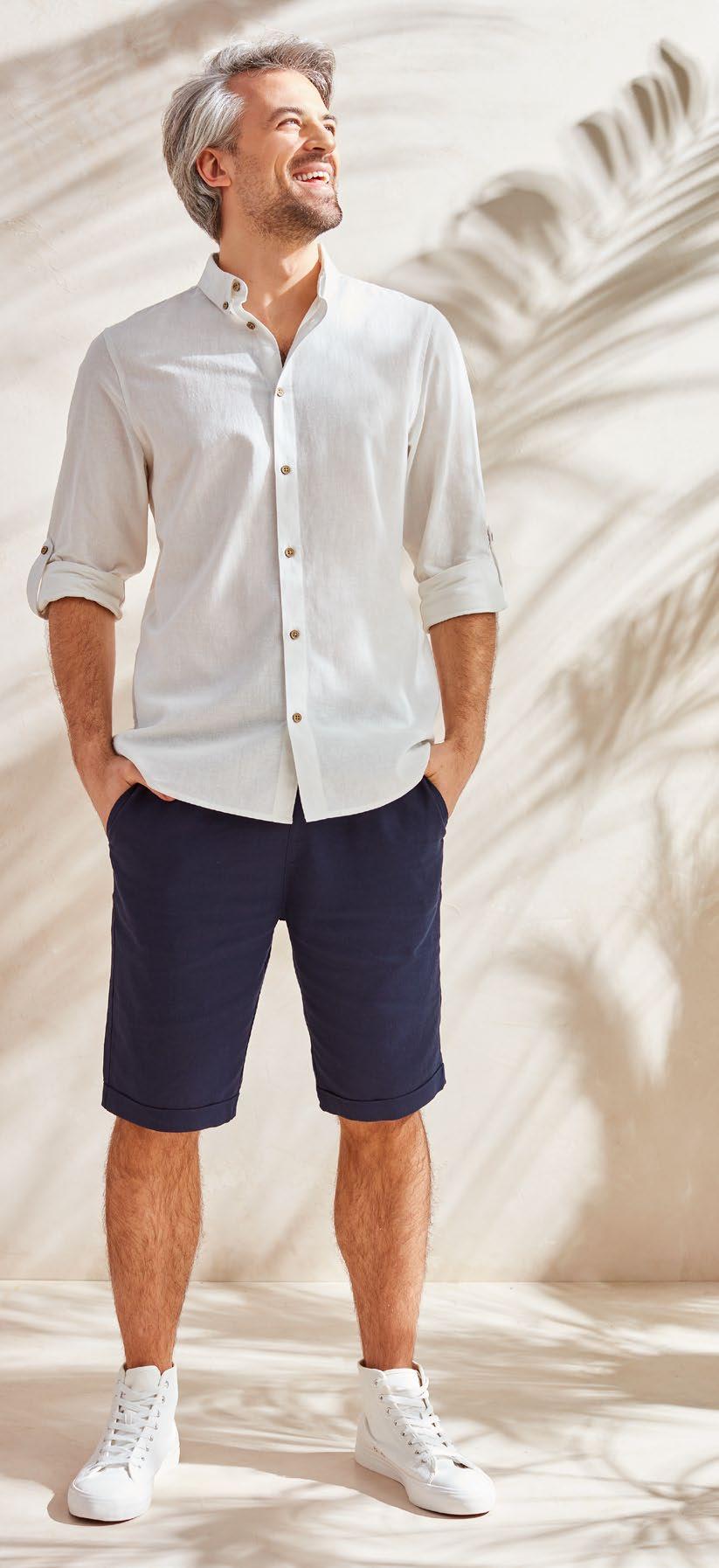 Риза 80% памук и 20% лен, мъжка, с яка с копчета и копчета за подвиване